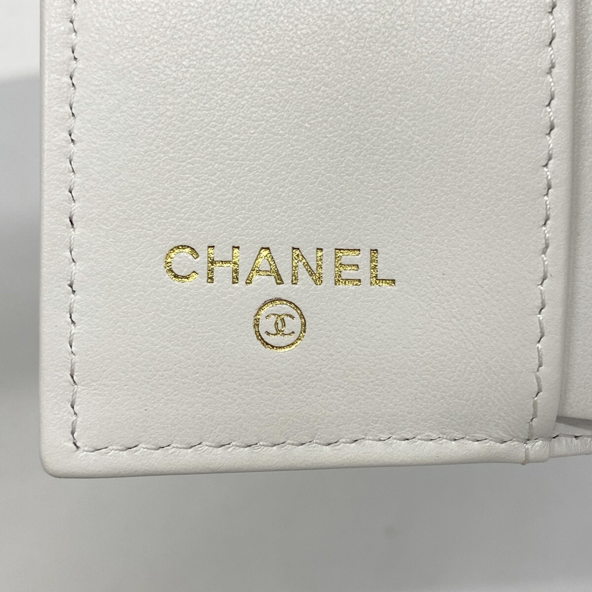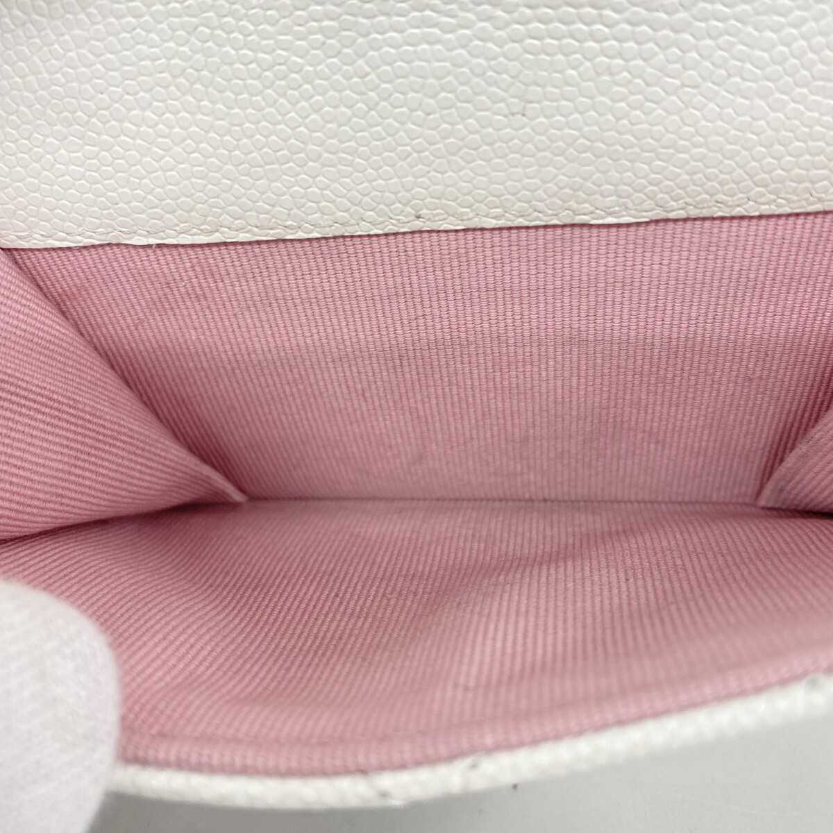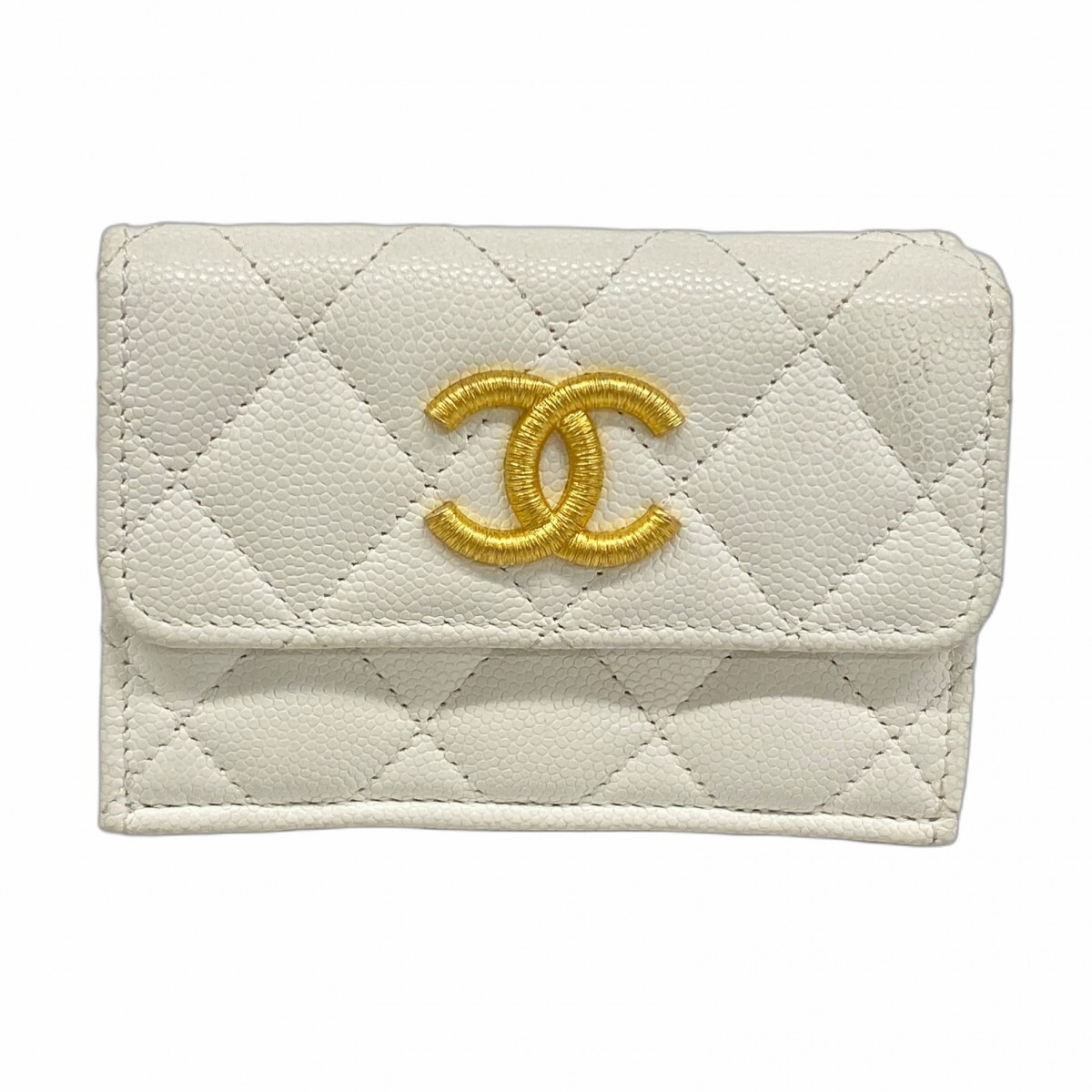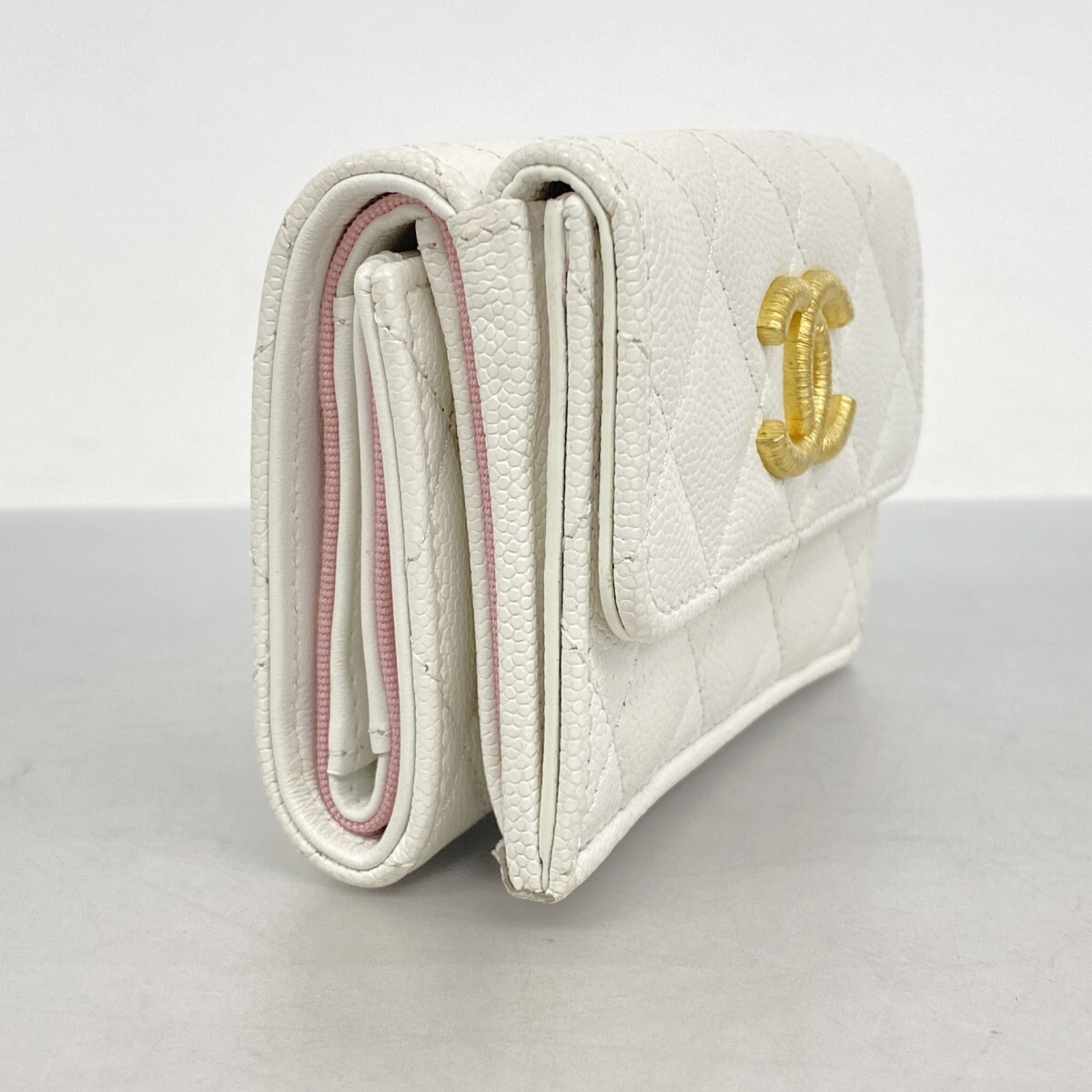 【5he5207-h】シャネル 三つ折り財布 マトラッセ キャビアスキン ホワイト ゴールド金具【中古】レディース