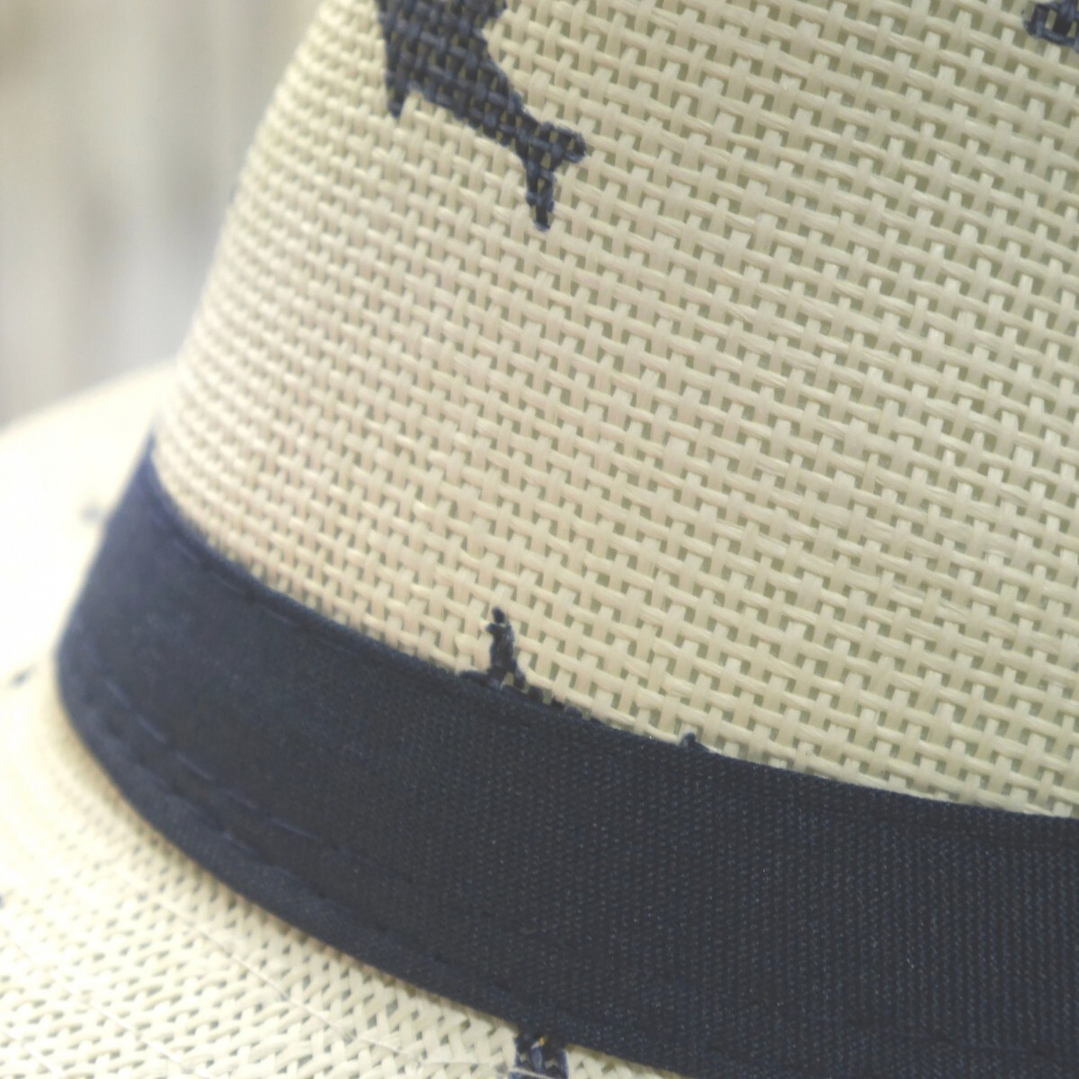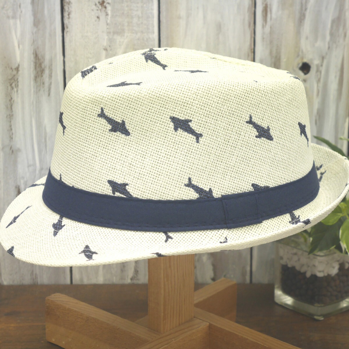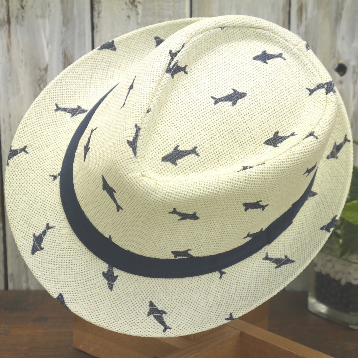 全国一律送料450円 ストローハット Fish Print 魚柄 フェドラハット ホワイト 男女OK ハット パナマ ボルサリーノ 麦わら 中折れ