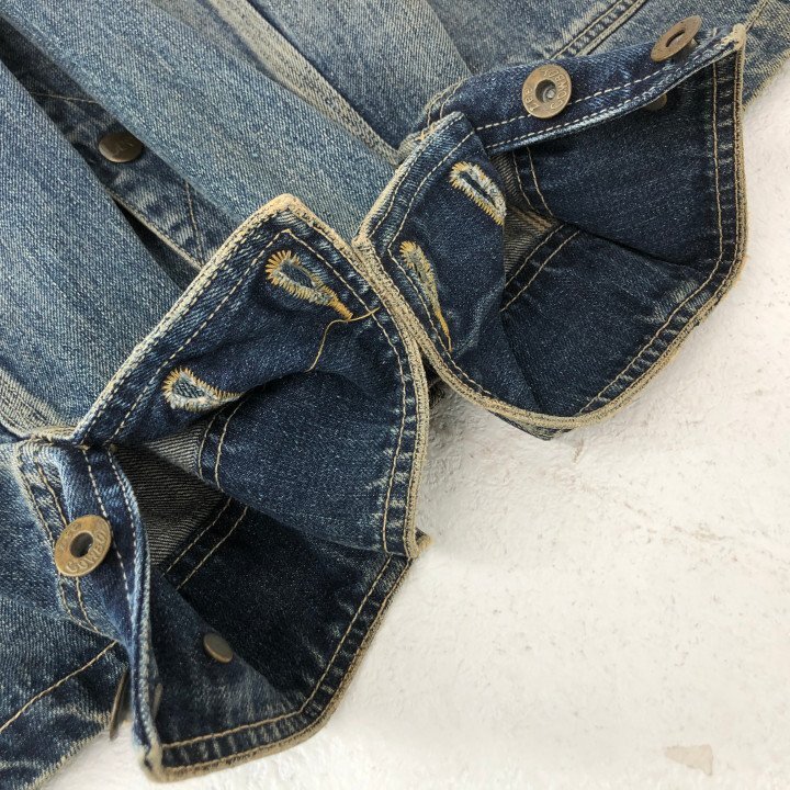 ▼SIZE:M ▼実寸(平置き) ・肩幅:約47cm ・身幅:約55cm ・袖丈:約64cm ・着丈:約72cm ※あくまでも参考サイズですのでご了承下さい。 ▼素材:写真参照 ▼color:インディゴ ※色の判断は出品者の主観で判断しております。 メーカーとカラーの表現が異なる場合があります。 ▼商品説明 ・一般的な使用感があります。 ・全体的にスレ等があります。 ・右ポケットに一部、小さなダメージがあります。 ・着用に支障をきたす汚れ、ダメージは見受けられません。 ※こちらの商品は、お宝あっとマーケット町田店(直営店)と併売しております。 当店にてご入札が確認出来次第、店舗での販売を終了させていただきます。 また、店舗で売れた際はYahoo!オークションをキャンセルとさせていただきます。 ご落札していただいても、時間差で売切れの場合がございます。 予めご了承の程よろしくお願い致します。 商品状態は当店にて検品、確認を行い商品情報へ記載しておりますが、 記載外の微細な汚れ、シワ、スレ、ダメージなどがある場合がございます。 予めご了承頂けますようお願い致します。 |