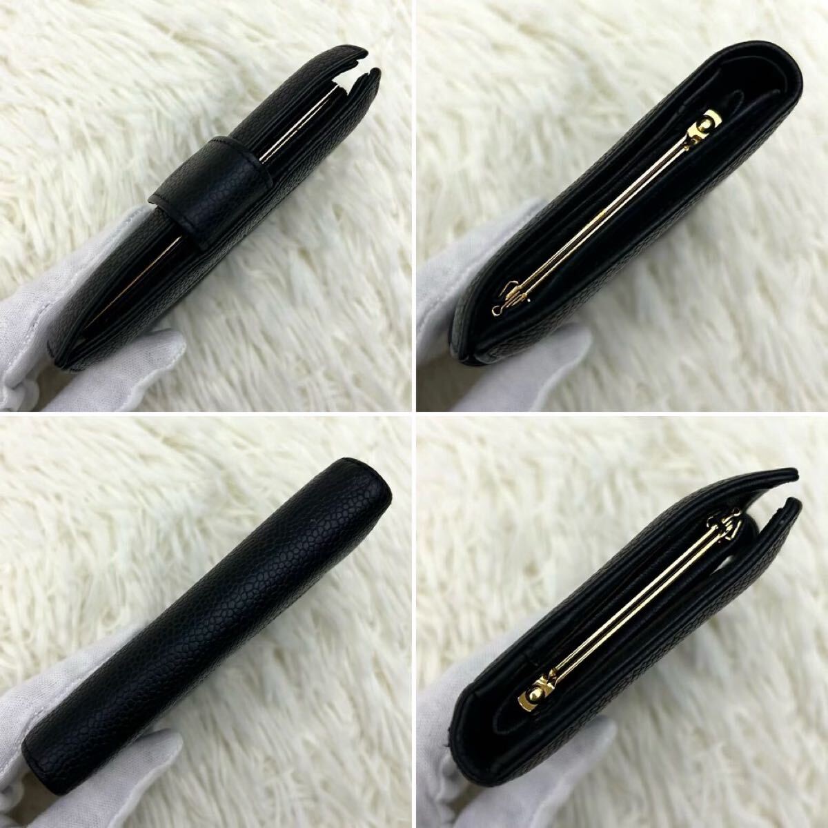 高級レザー製のブラック財布。シンプルなデザインで使いやすいです。