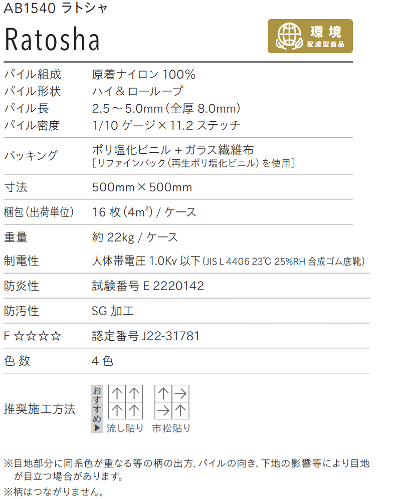 川島織物セルコン 業務用 タイルカーペット アートバンク ラトシャ AB1540 全厚8mm 寸法50×50cm 16枚入り/ケース