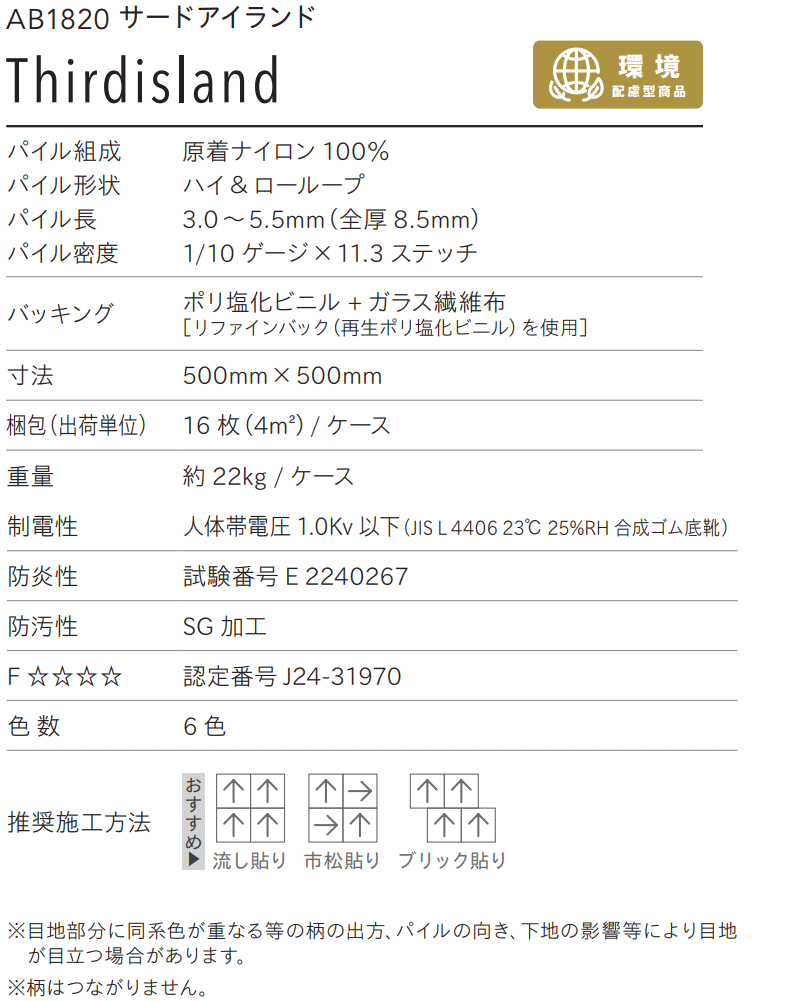 川島織物セルコン 業務用 タイルカーペット アートバンク サードアイランド AB1820 全厚8.5mm 寸法50×50cm 16枚入り/ケース