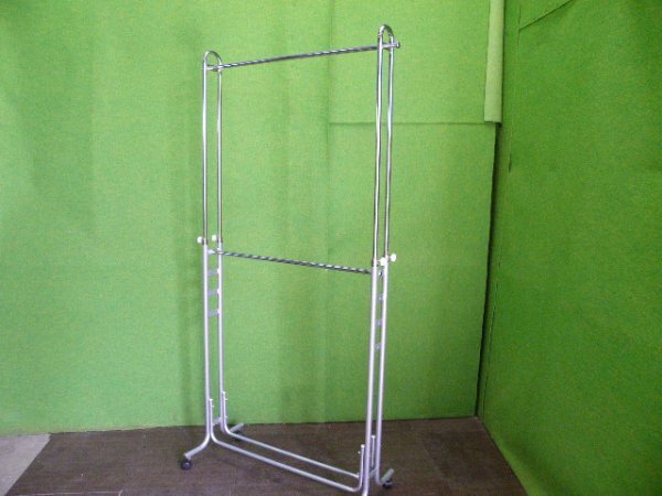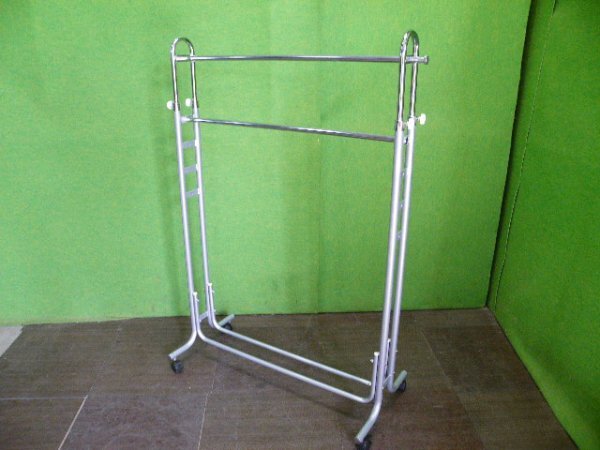 業務用 2段ハンガーラック ダブルスタンドタイプ シルバー キャスター付き |