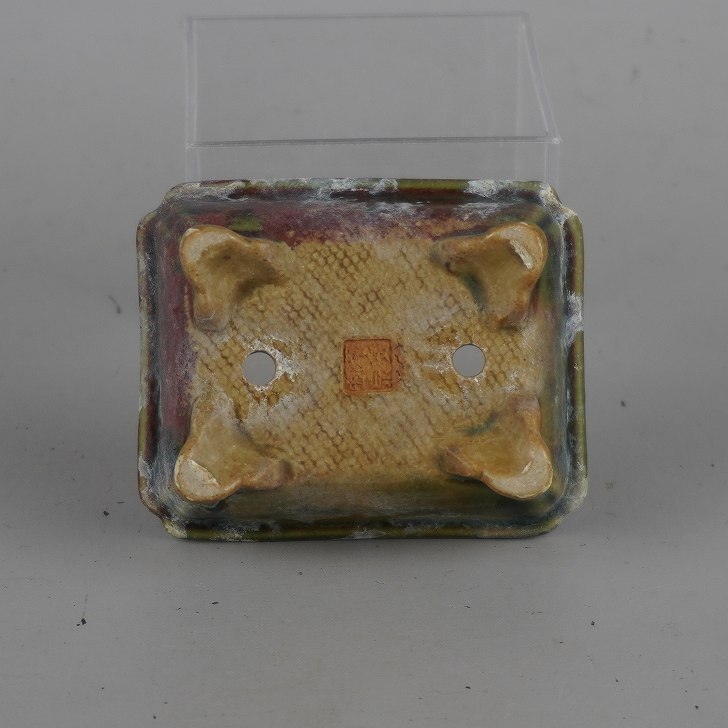 | 平安虹泉 昭和8年2月28日生まれ。昭和30年ごろから盆栽を始める。 東福寺鉢に魅せられて昭和40年ごろから全くの独学で鉢づくりを開始。焼成を登り窯に固執し、次々と廃窯になっていく中で最終的に河合寛次郎氏の登り窯で焼かせてもらうことになる。東福寺の梨皮泥の再現に2年間取り組み、釉薬も均釉・織部・辰砂・蕎麦などは既製品の釉料にあきたらず、独自の工夫を試みる。 |