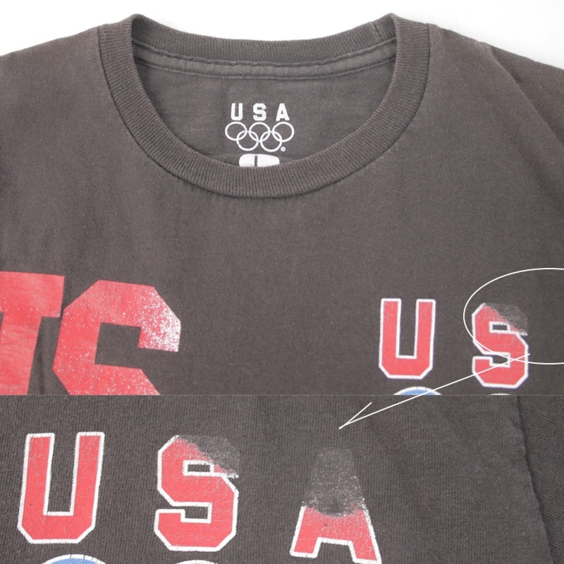 左胸のUSAの文字のプリントかすれ。他の大文字プリントもかすれたのかはわかりません。