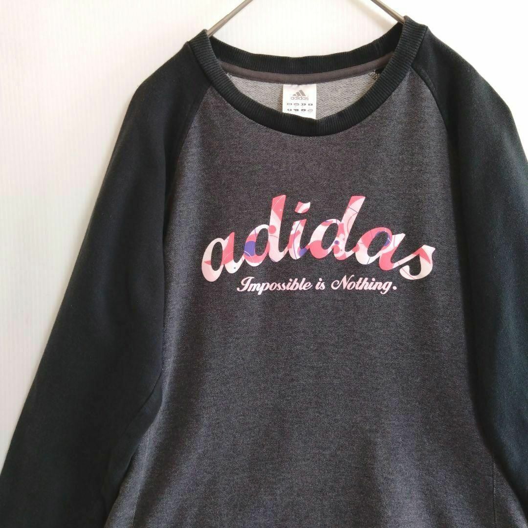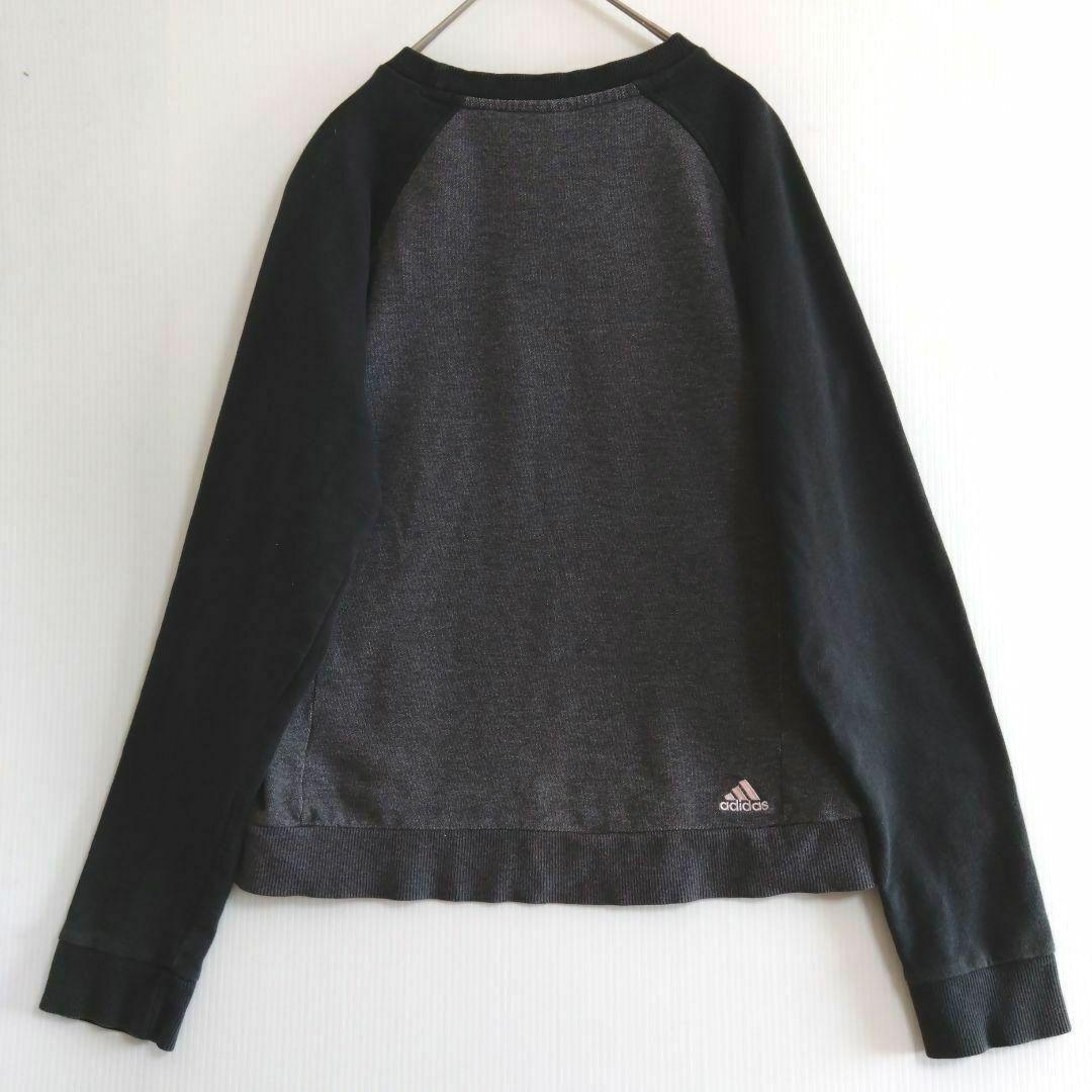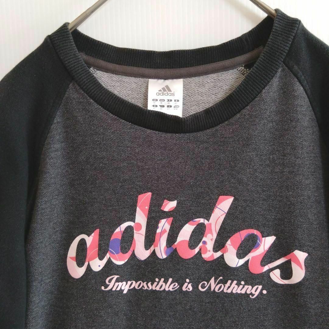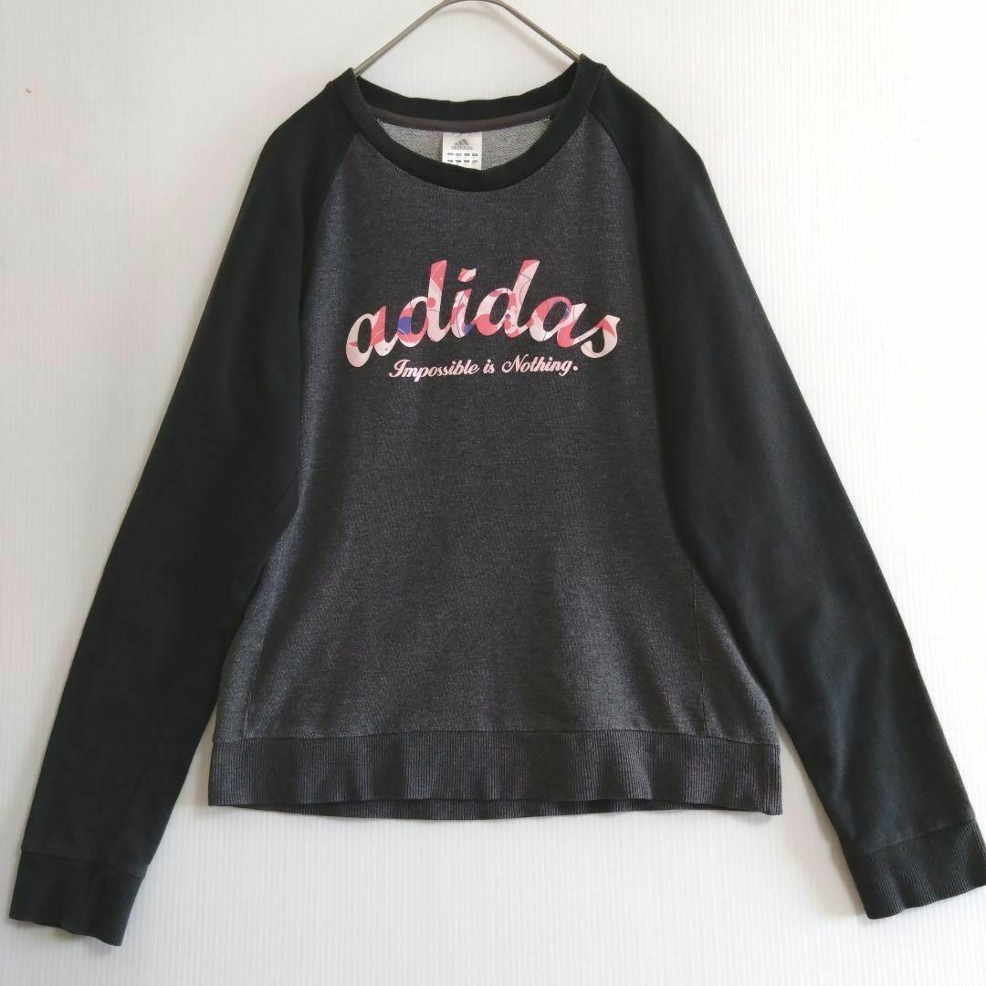 844 adidas スウェットトレーナー OT 黒 灰 プリントロゴ レディス