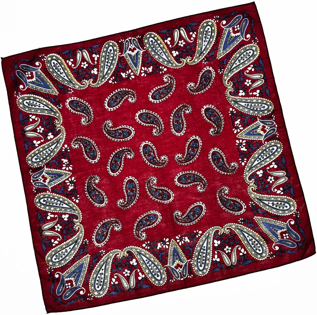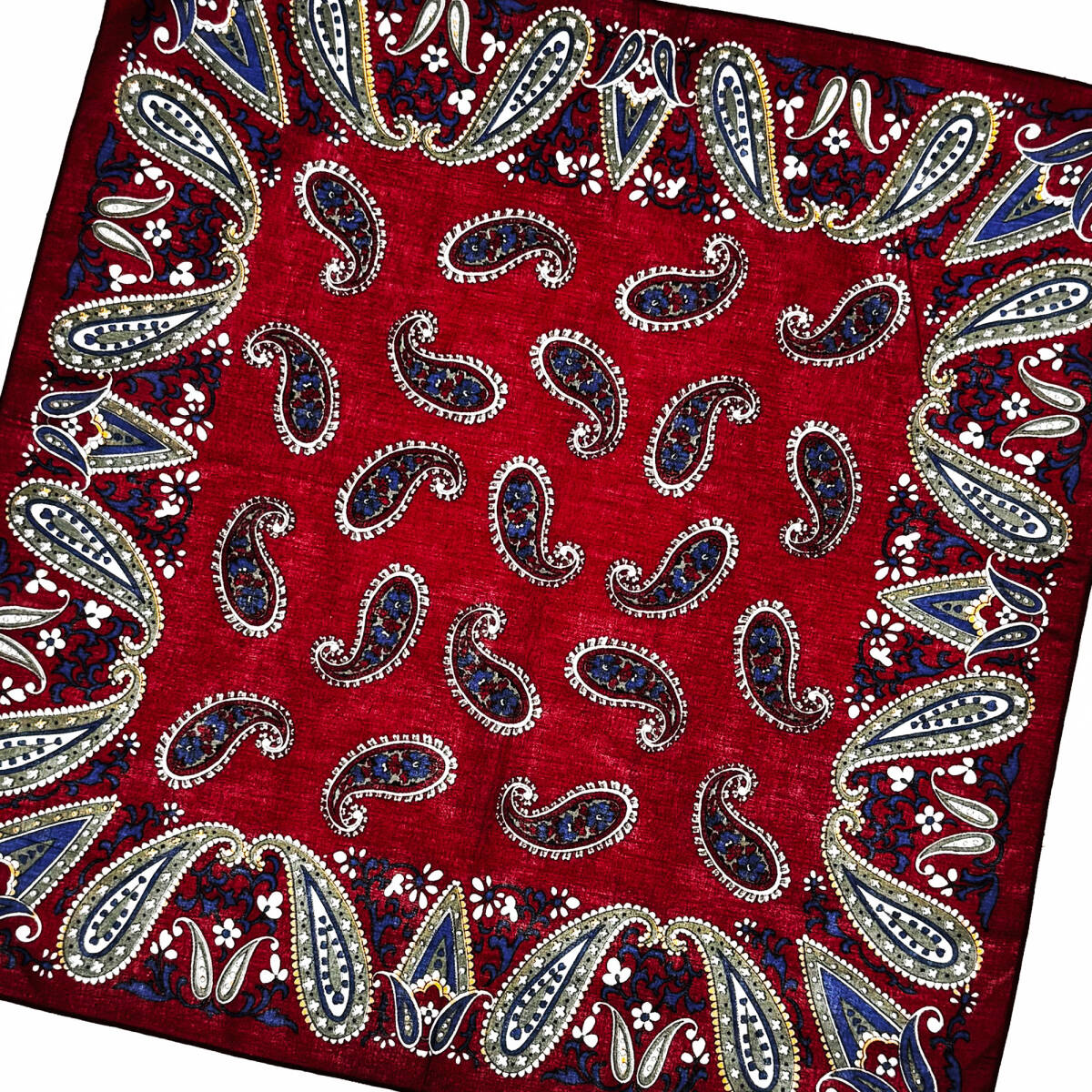 商品説明 | エンジ ペイズリーモチーフ柄物バンダナです。 □素 材:100%コットン □カラー:エンジ/オリーブ/ホワイト/ブルー □サイズ:52㎝×51㎝ 自宅保管、新品未使用。 #BANDANA #バンダナ #ペイズリーバンダナ |