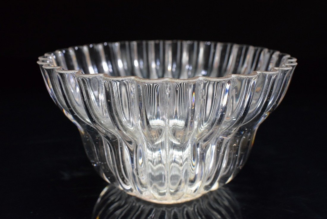手彫り ギヤマン 菊形輪花 ガラス鉢碗 時代 硝子 和ガラス 義山 江戸切子 気泡 H697 |