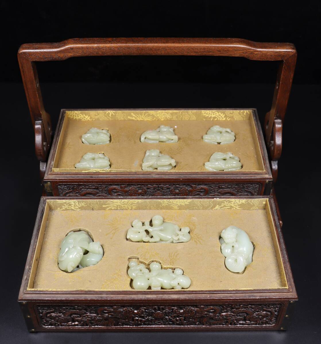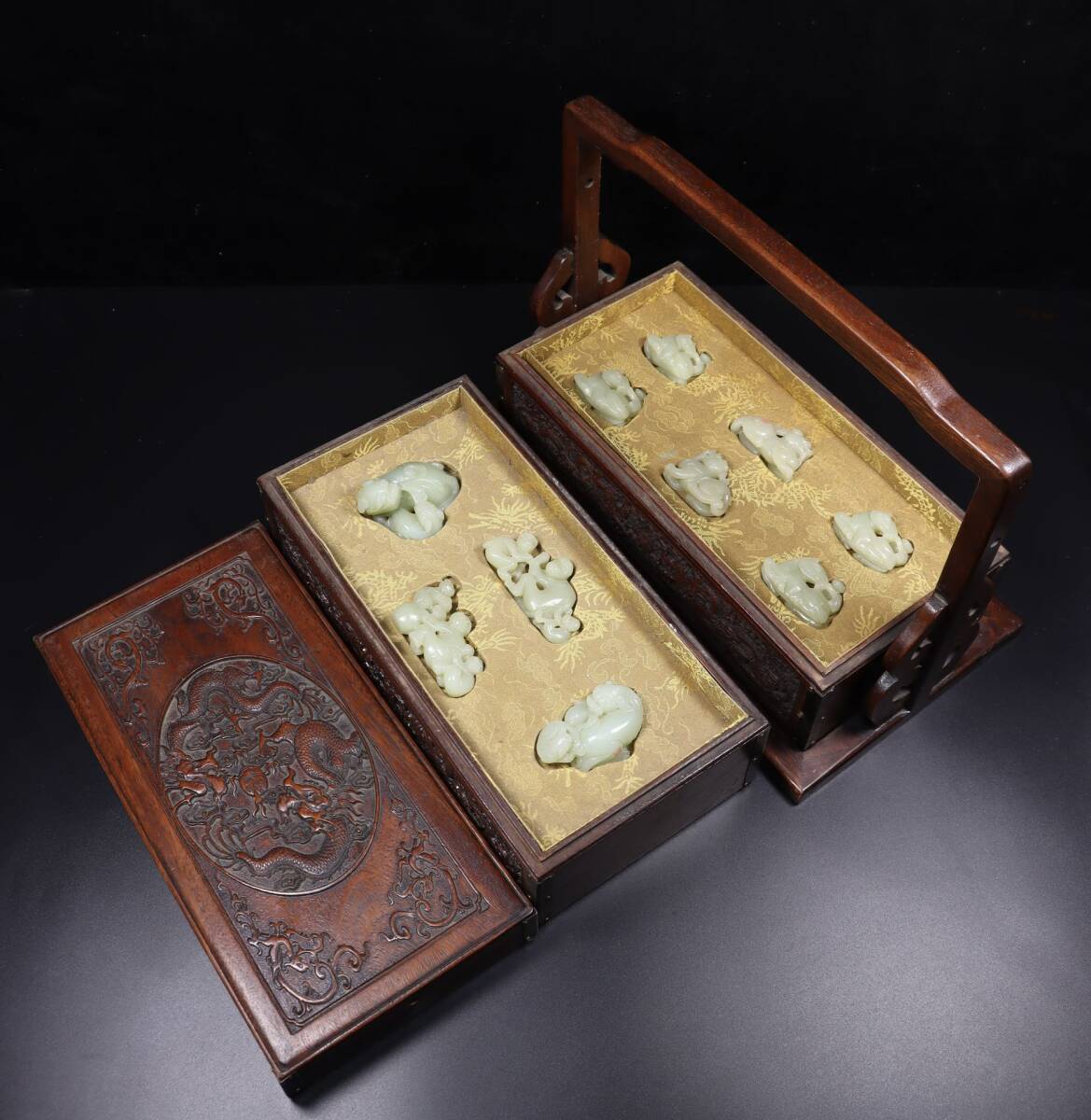 唐物 清 玉彫 和田玉 多寶盒 包漿厚重 置物 極細工 中国古玩 骨董品 古美味 D69