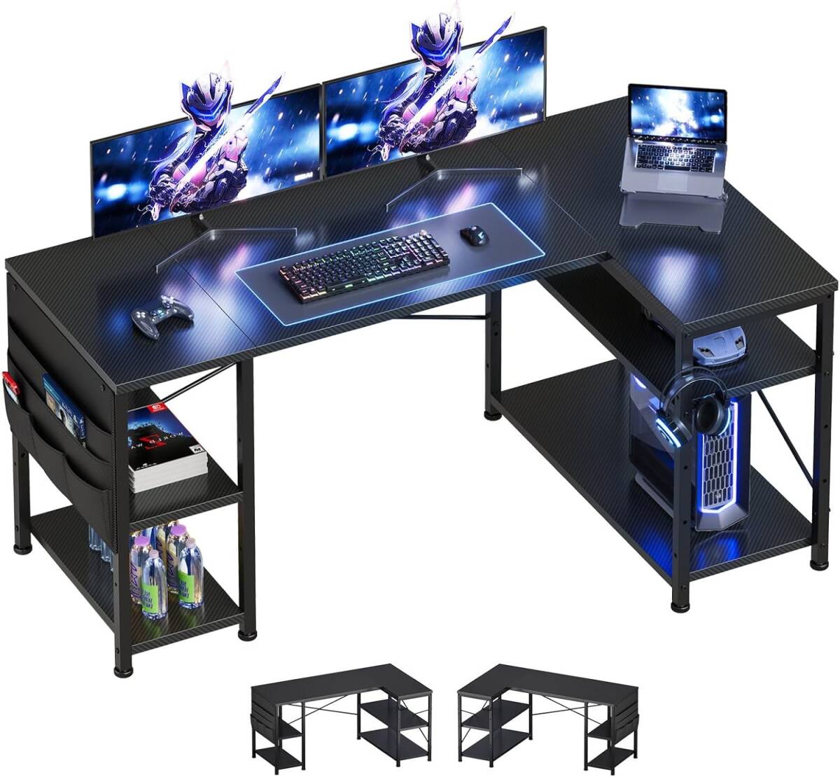 ゲーミングデスク l字デスク机 pcデスクブラック 130cm パソコンデスク 左右入替可棚 板高さ調節可能 オフィスデスク ワークデスク