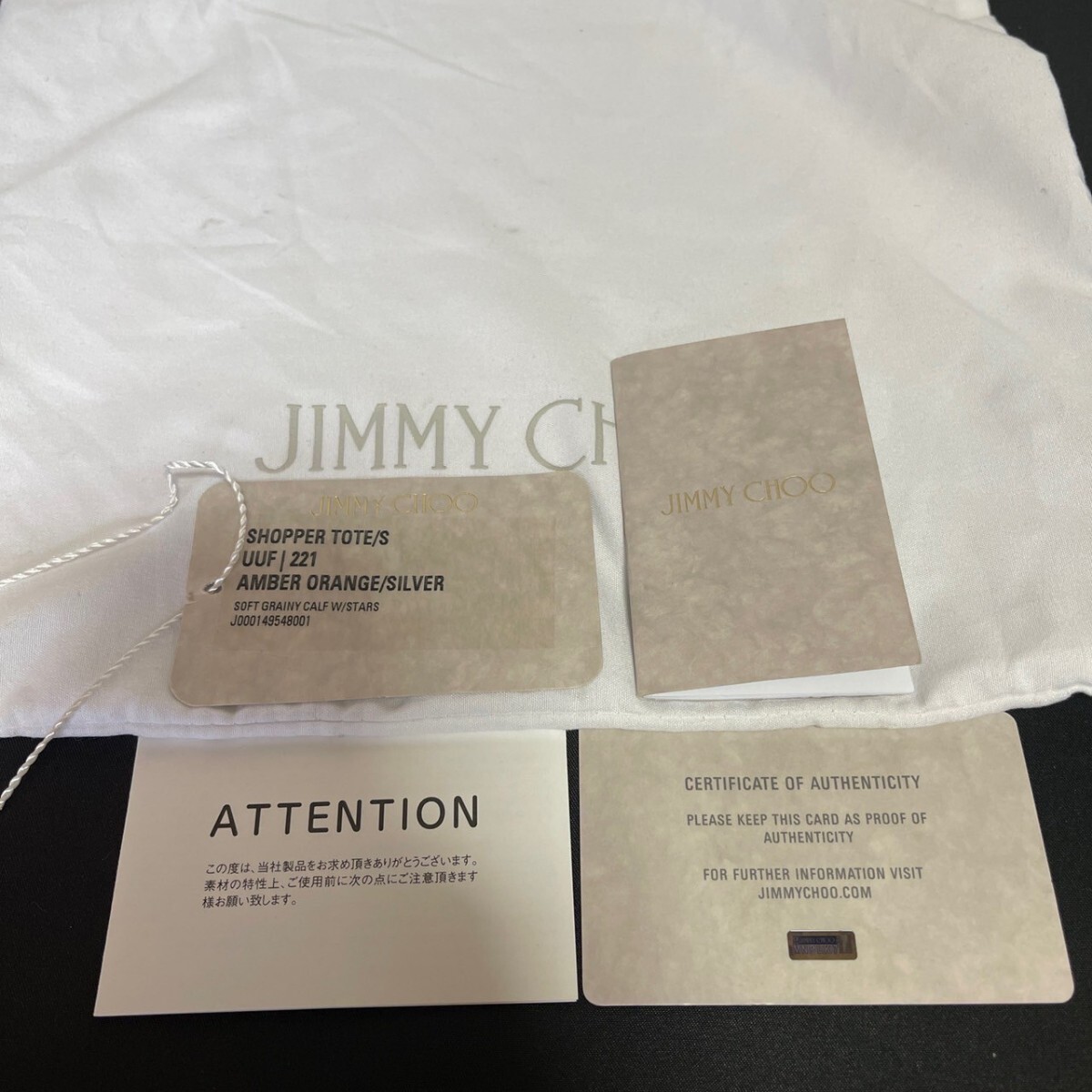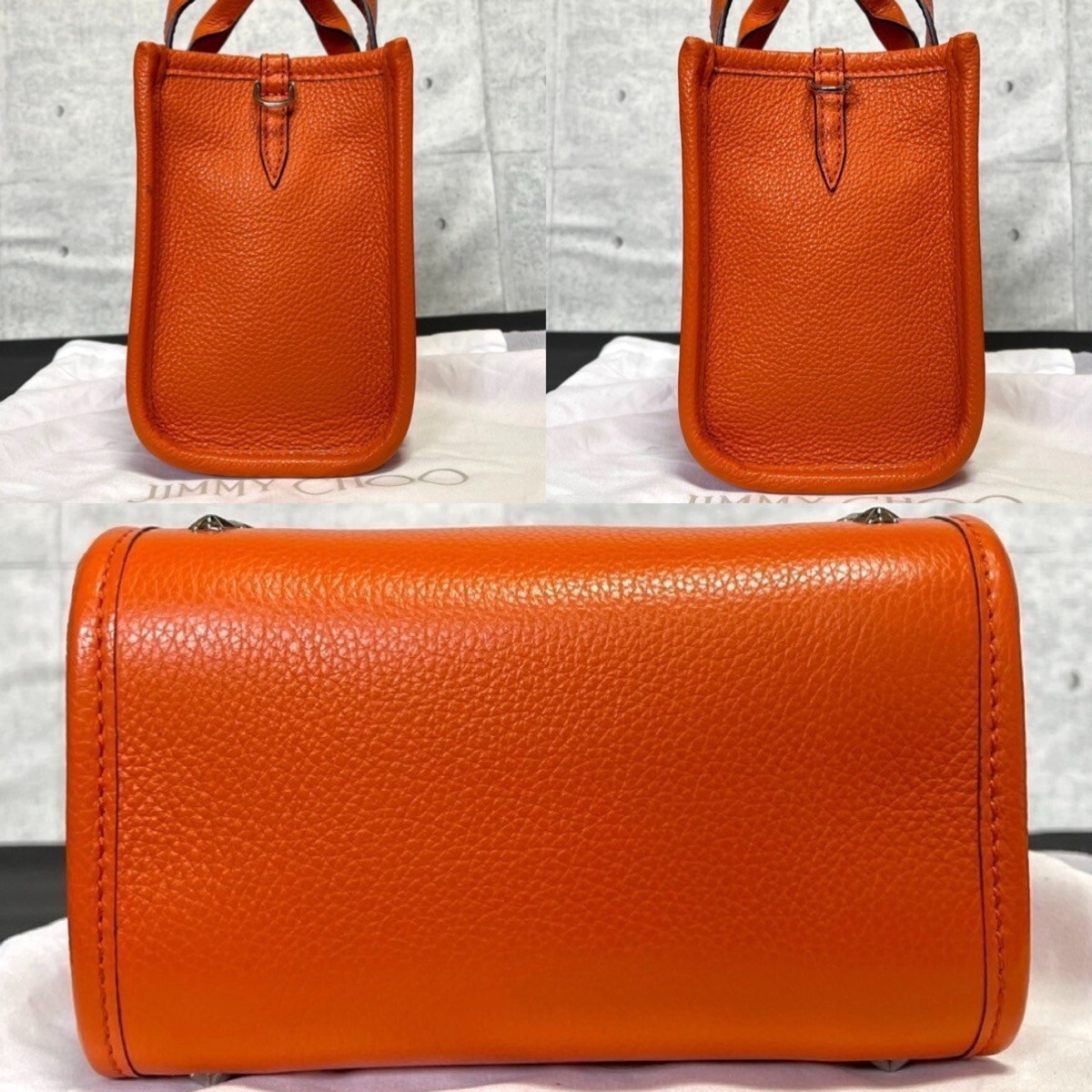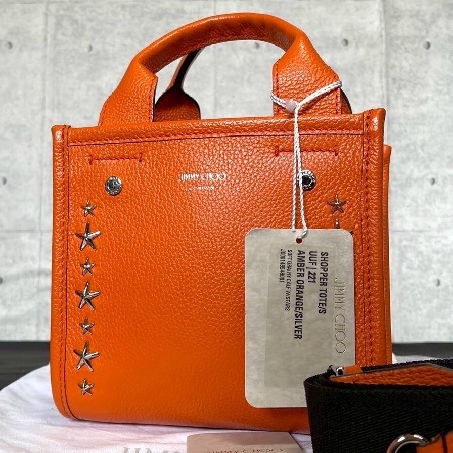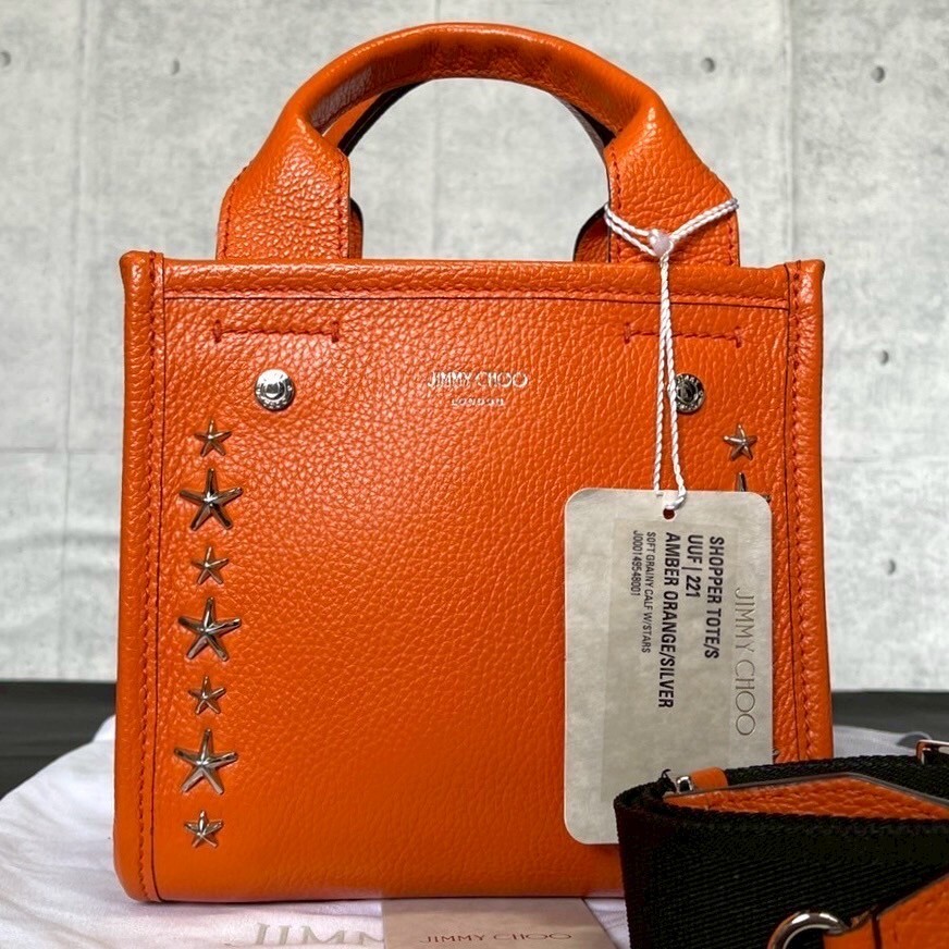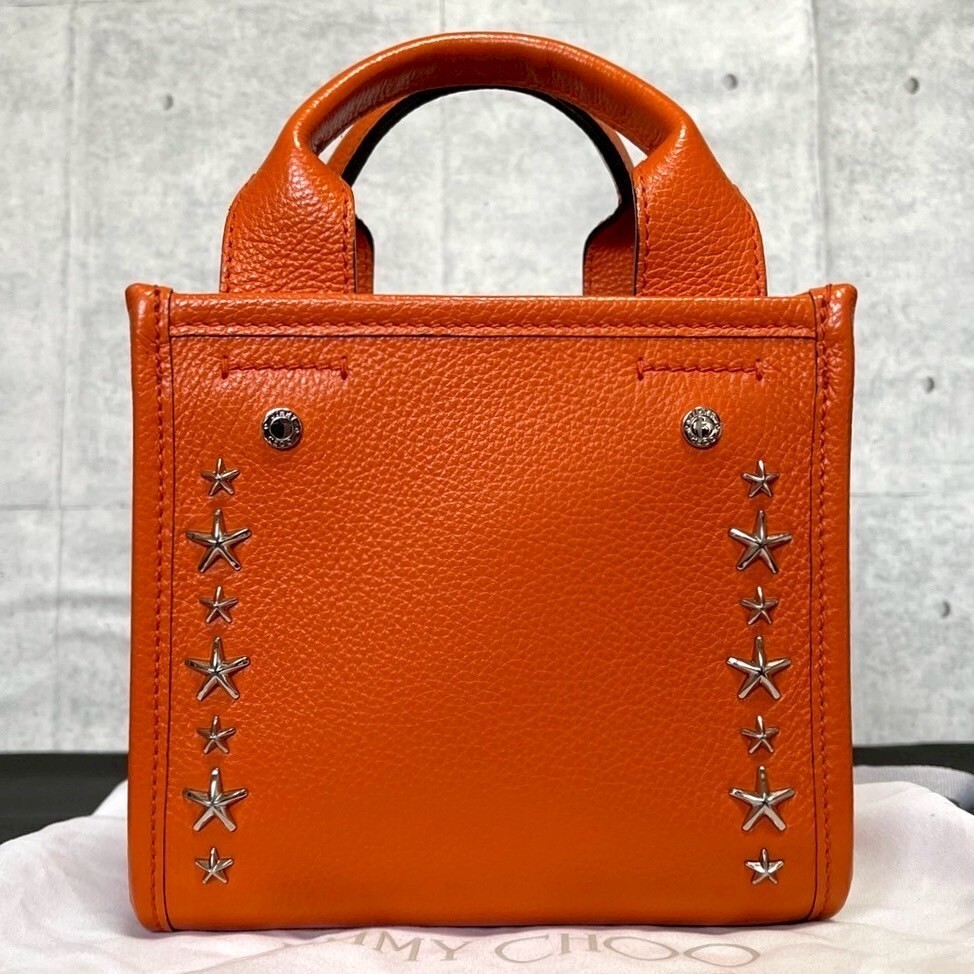 未使用級タグ付き JIMMY CHOO SHOPPER/S TOTE ジミーチュウ ハンドバッグ オレンジ シルバースタッズ レザー 2WAY トートバッグ ショルダーバッグ