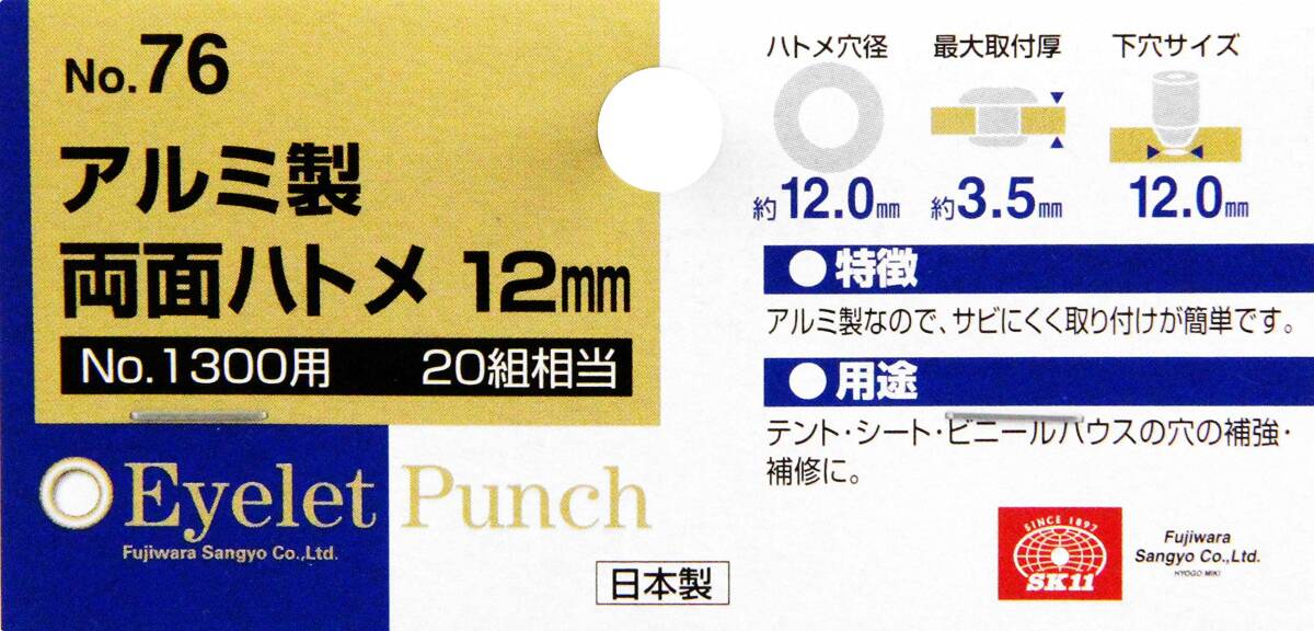 No.76 本体1300用 ハトメ穴径約12.0mm 20組 アルミ 両面ハトメの玉 SK11(エスケー11)