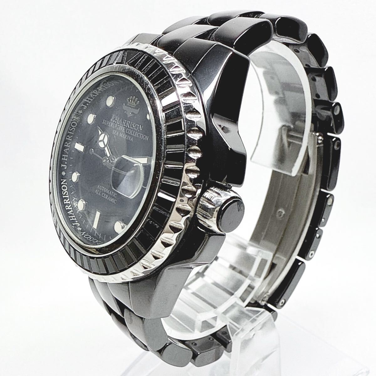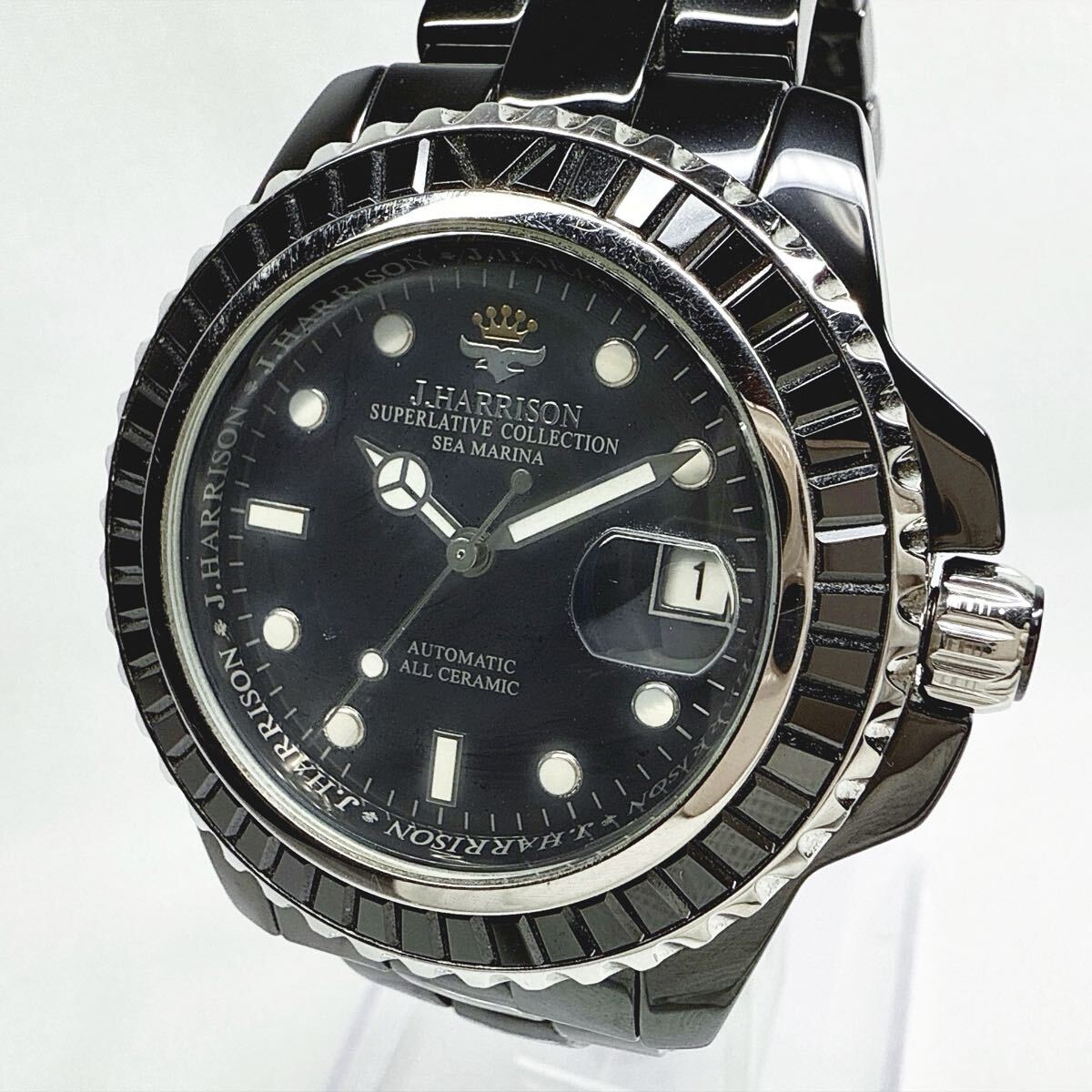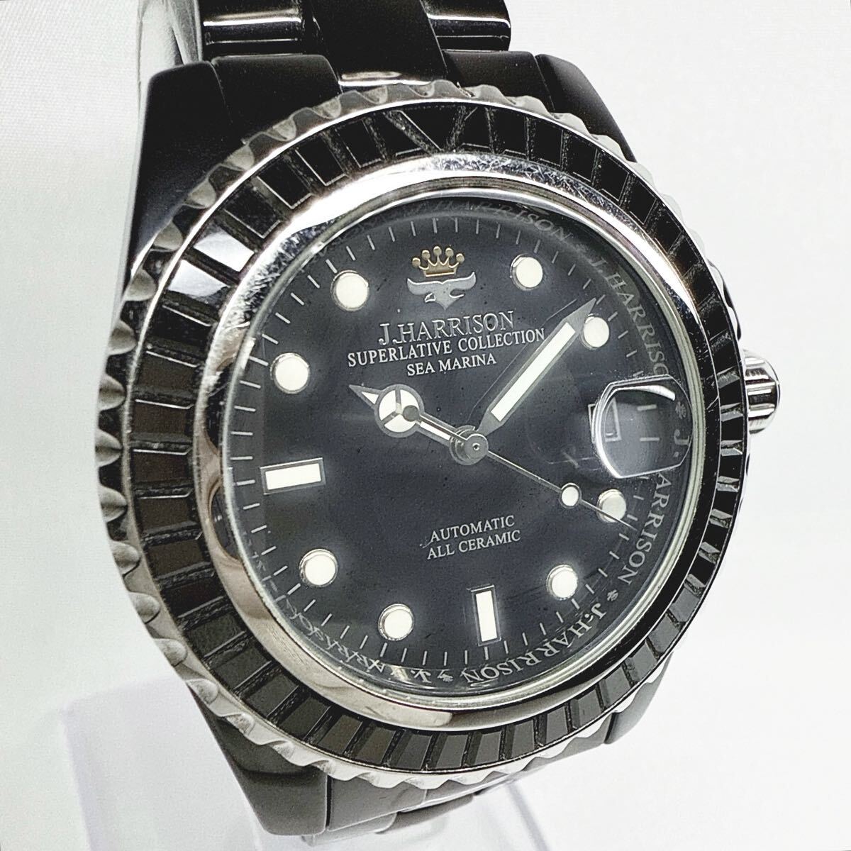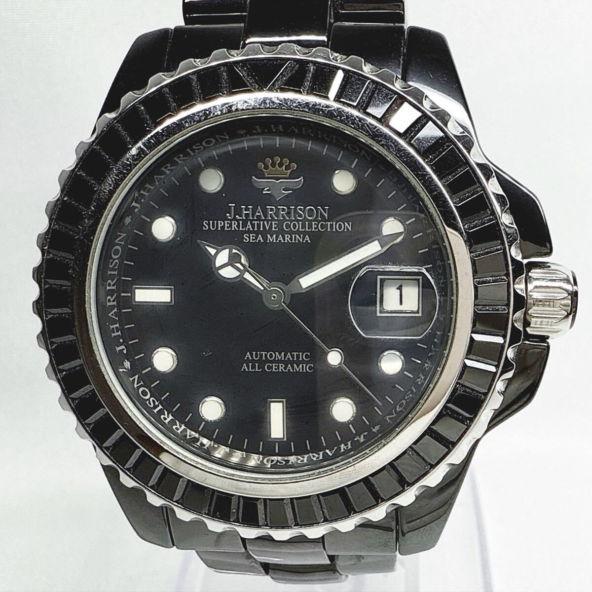 稼動品 J.HARRISON ジョンハリソン SEA MARINA JH-016 自動巻 デイト ブラック文字盤 ラウンド ベルト純正 セラミック メンズ 腕時計