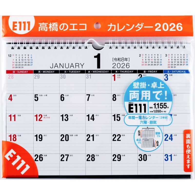 今までになかった大きな壁掛・卓上兼用カレンダー。大きめな卓上タイプとしても使えます。
