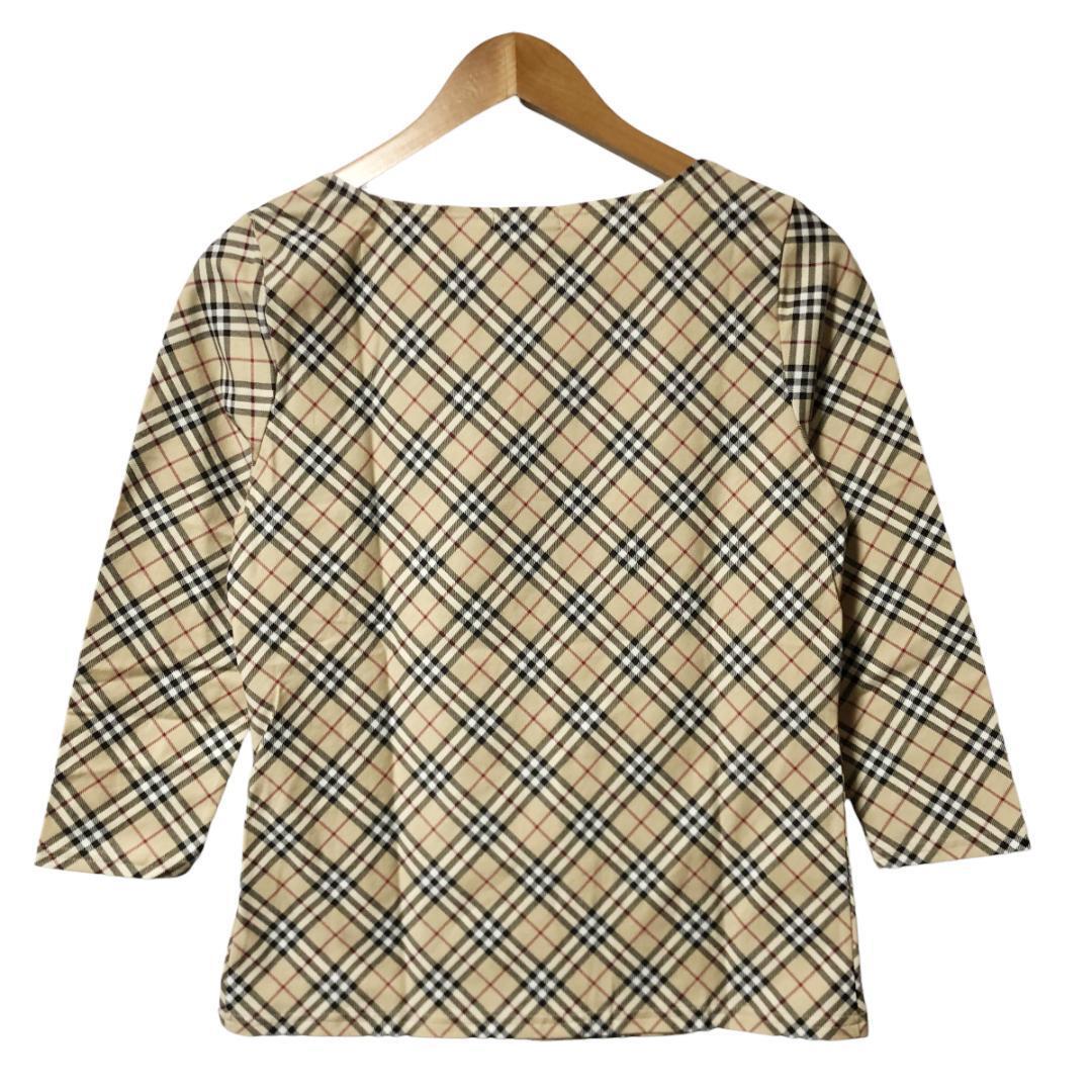 BURBERRY バーバリー ノバチェック カットソー 七分袖 ストレッチ 2 ベージュ Tシャツ ボートネック レディース M2