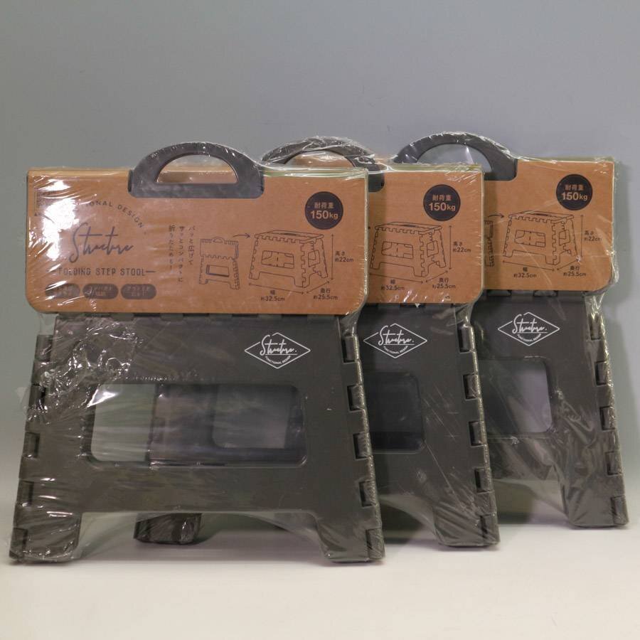 【3点セット】未使用 フォールディングステップツール 高さ22cm カーキ色 踏み台 折りたたみ式 アウトドアにも◆251f06