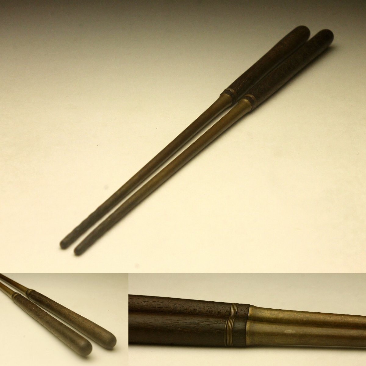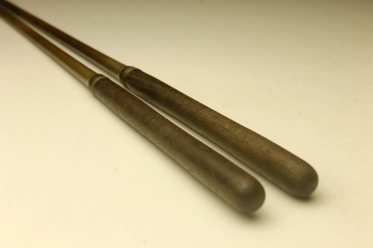 【余韻】 茶道具 木柄 銅造 火箸★時代物 無傷美品<同梱可>