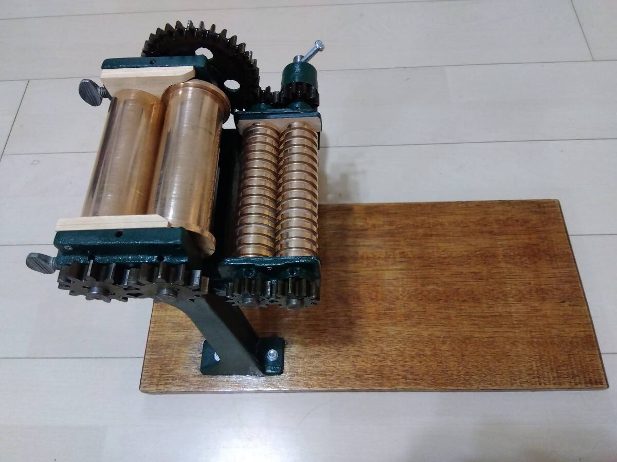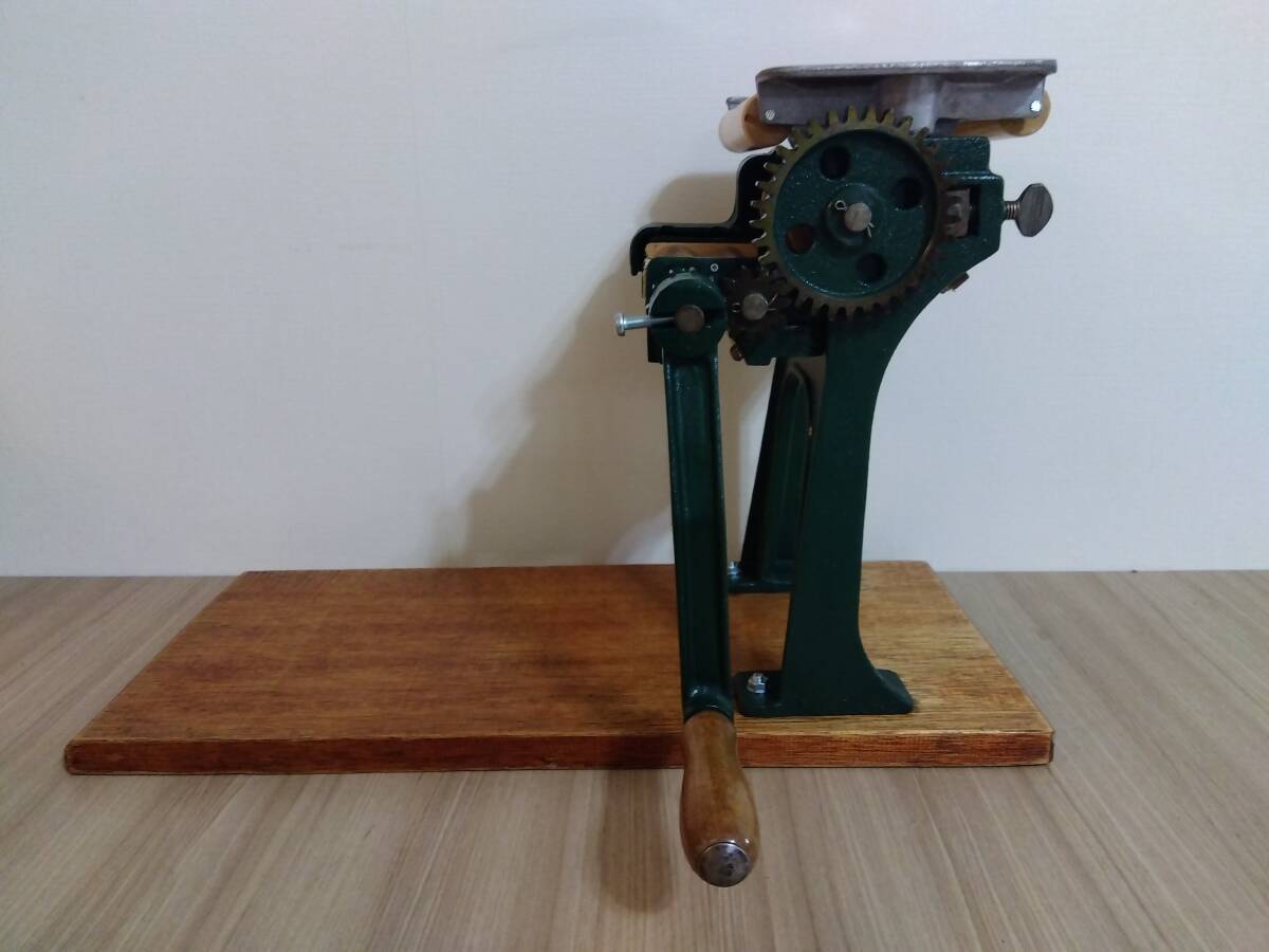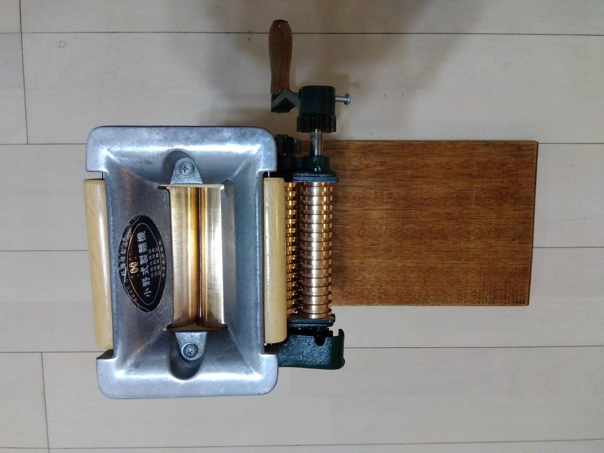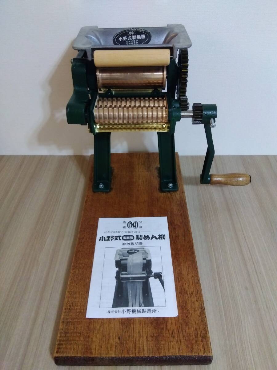 【超激レア美品】小野式製麺機 2型 片刃 4.2㎜ フルレストア品(取扱説明書コピー付) この個体は大型(幅広、業務用タイプ)で切刃4.2mmの激レア品です。 標準機は切刃2.2㎜です。 年に1機出るか出ないかの超激レア品です。 小野式製麺機は昭和から平成初期頃まで製作された非常に剛性で当時から重宝された製麺機です。 小野機械製造所は既に廃業されてますが、頑丈、丈夫な特性が生かされ未だに業務用、家庭用、マニアなどに愛され使われ続けております。パスタマシーンでは壊れる様な加水率の低い硬い麺帯もグリグリ回せて壊れる心配もほぼ有りません。当方は、この小野式製機を数100機以上、分解、組立の実績が有り勿論、私も愛用中です。 サン板(切刃両サイドの2枚)月板(上部ローラー両サイドの2枚)木ロール2本は当方手作りオリジナルヒノキ材使用の新品に交換済です。 本体は塗装、台板、ハンドル木製部分、木ロールは食品衛生法適合抗菌剤配合ニスでコーティングしてあります。 全て分解して洗浄(フルレストア)(業務用油洗剤、錆、油落とし)してあります。 シャフト回転部分に長期潤滑防錆用グリーススプレー、ギアにはミシン油(メーカー推奨)を塗布してあります。 組立完成後、未使用ですが、スムーズな回転と除菌ウェットティッシュでテスト確認済です。 則使用可能かと思いますが、ご使用の際は落札者様でクリーニングとテスト麺帯(捨麺)などでの使用と櫛刃や圧延部分など細かい調整をお願いいたします。 金色の真鍮は時間や使用、保管により自然に変色していきます。掲載写真は完成直後の物です。写真に写らないシミや変色などもございますので承知おき下さいませ。 【保証について】 商品到着後48時間以内の受取連絡をしていただいた落札者様に限り落札日より4カ月保証致します。(ヤフオク取引ナビ使用期限です)メールで画像などの確認をさせていただき当方の落ち度や不具合と認めた場合、無償での修理の対応いたします。 ※消耗品(月板サン板など)や落札者様による破損、誤った使用による不具合や調整、注油、変色、腐食、音、回し感など細かい事や麺の仕上がり等、及び商品到着後48時間以内の受取連絡が無い方、メールなどで画像を送信できない方などは保証対象外です。 原則、当該部品を当方負担で送付して落札者様で部品の脱着での対応となりますが当方が分解しての修理が必要と判断した場合は台板を外して本体部分のみを80サイズ以下で当方へ送付していただく条件で、なるべく早急に修理後返送致します。※往復送料当方負担 当方、ヤフオクの(出品中の商品)の通り、多くの部品を保有しておりますが稀に部品の在庫が無い場合、金属加工会社へ依頼して作成致しますので10日~1カ月ほどかかる場合があります。 当方多くの分解組立の実績が有り当方全力で仕上げましたが。そもそも昭和から平成初期のレトロ品ですので落としきれない汚れ、錆、キズ、若干のネジ、ピン等の変形、などございます。もしかしたら細かい部品の欠品や間違いなどあるかもしれません。写真でよく確認されご不明な点は質問よりご確認の上ご入札お願い致します。 ※どんな製麺機でも使用すると麺カスが必ず出ます。切刃や抑え刃などに麺カスなどが付着します。故障でも不良品でもありません。そして使用後の清掃なども必要です。ぜひ大事に可愛がってくださる方の落札お待ちしております。 気持ち良いお取引を心がけてますが、専門的な意見を、お持ちの方、細かい点まで気にされる方、完全を求める方や神経質な方、かんたん決済期限内の決済及び商品到着後48時間以内の受取連絡をできない方はトラブル防止の為ご入札お断り致します。 【発送】全国一律 送料無料 ヤフネコ宅急便/ゆうパックおてがる版 ※発送時ハンドルが突起物になりますので外すか逆付けして発送いたします。 | |||