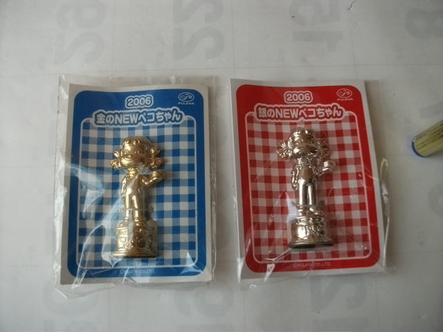非売品 不二家 FUJIYA 2006 金のNEW ペコちゃん 銀のNEW ペコちゃん マスコット フイギュア ビンテージ レトロ