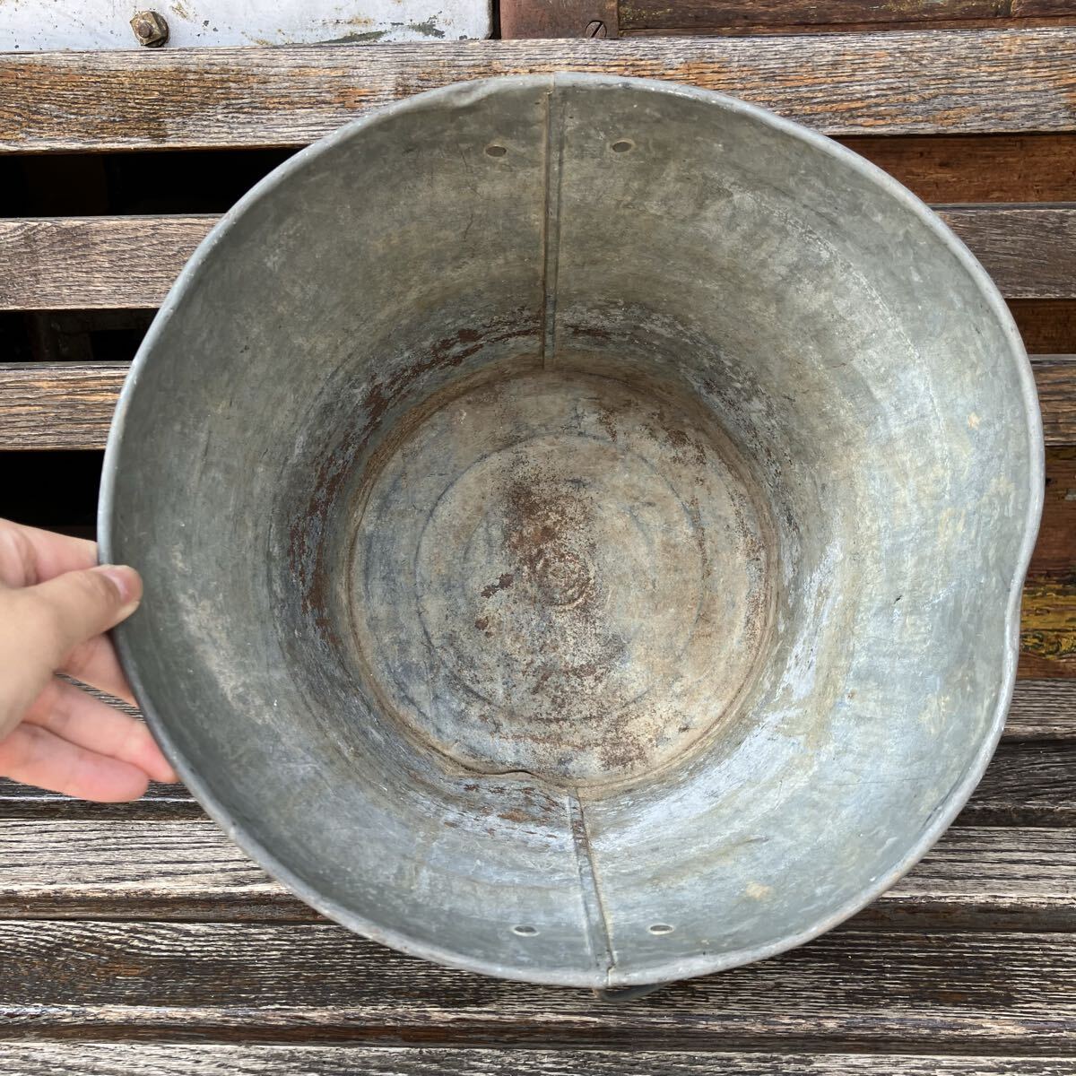 はじめましてRim ANTIQUESです。 ご覧いただきありがとうございます。 【商品説明】 アメリカで購入したブリキのバケツ です。 1950〜60 年代頃の物だと思います。 allブランドの洗剤が入っていたバケツです。 木のハンドル付きです。 道具入れや鉢カバーなどにオススメです。 全体的にキズや汚れ、歪み、大きな凹み、日焼けございます。 画像ご確認お願い致します。 送料は無料です。 発送はゆうパック で送ります。 他にもアメリカで買い付けた商品を出品してますのでご確認下さい。 是非ウォッチリスト、フォロー宜しくお願いします。 新入荷商品はインスタグラムでアップしています。ご覧下さい! インスタグラムにはホームページから飛べます。 コチラ 【サイズ】 高さ約27 cm 直径約29 cm ※実寸になります。若干の誤差はご了承さい。 【状態】 キズ、汚れ などはありますが古い物なので味とお考え下さい。 こちらの商品はビンテージ品になります。 長い年月を経て生じたダメージも味わいであると考えております。 ご理解いただける方のみ、入札ください。 また、状態の良し悪しは個人差がありますので、神経質な方はご遠慮下さい。 いかなる場合でもノークレーム、ノーリターンでお願いします。 【Rim ANTIQUES】 個人でアメリカから買い付けた雑貨や家具を販売しています。 都営新宿線 篠崎駅徒歩6分の所に実店舗があります。 イベント出店などで不定休ではありますが、お近くの方は是非お店に遊びに来て下さい。 (詳しくは自己紹介文をお読み下さい) |