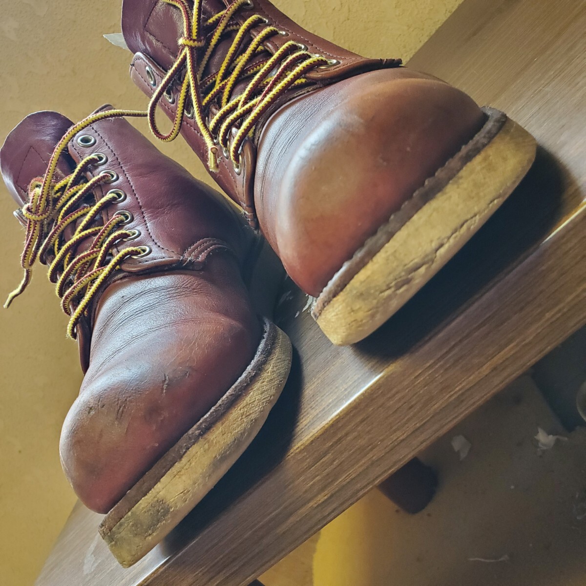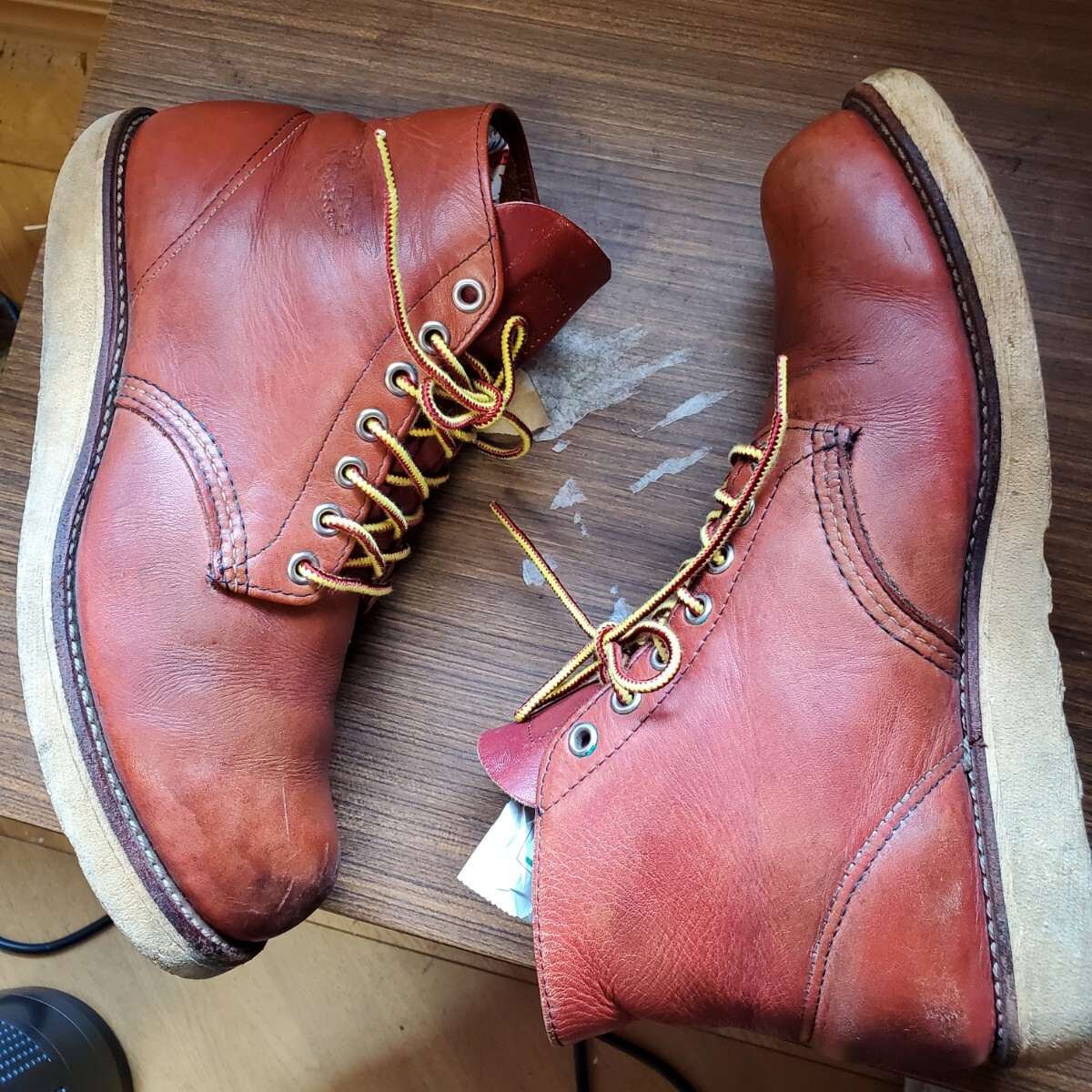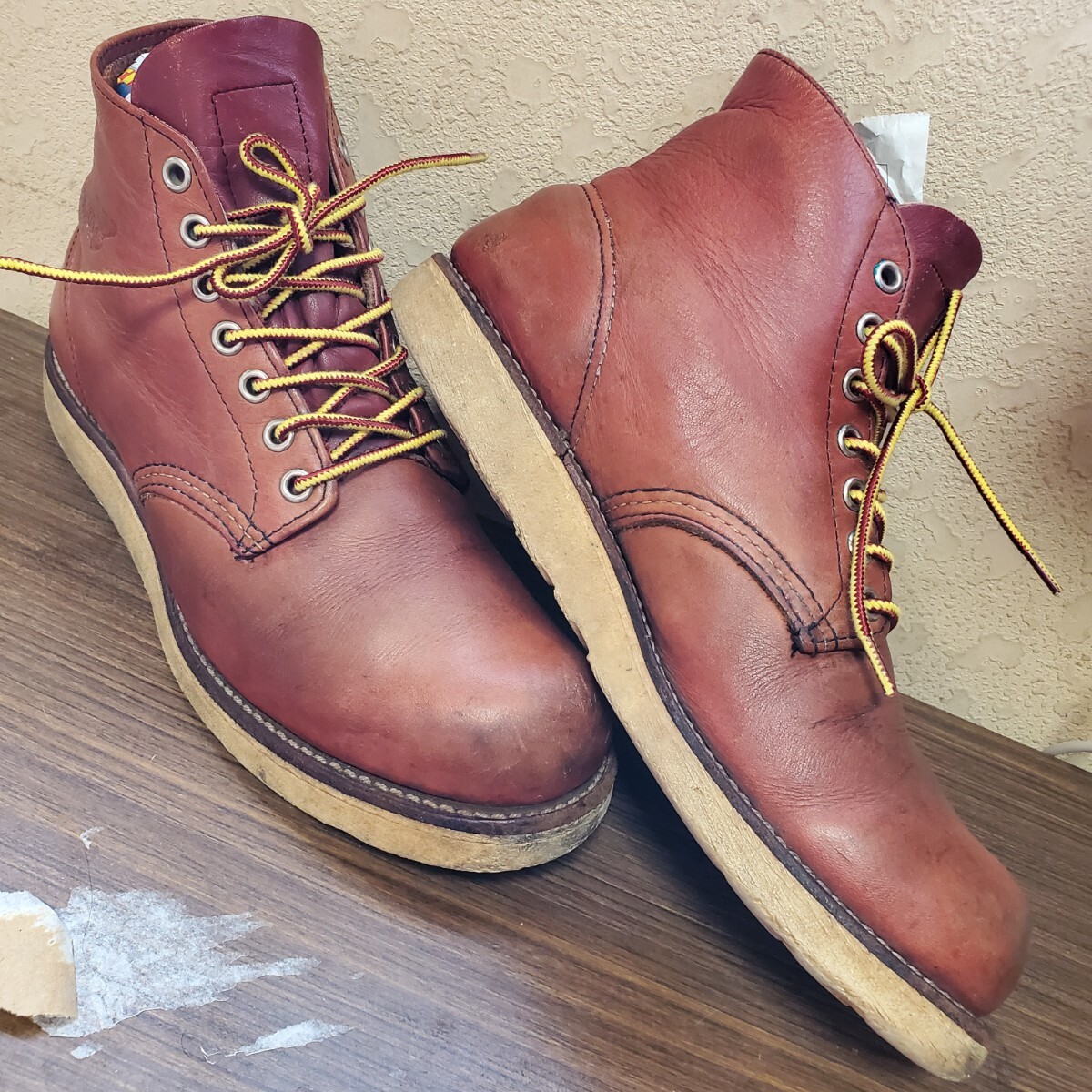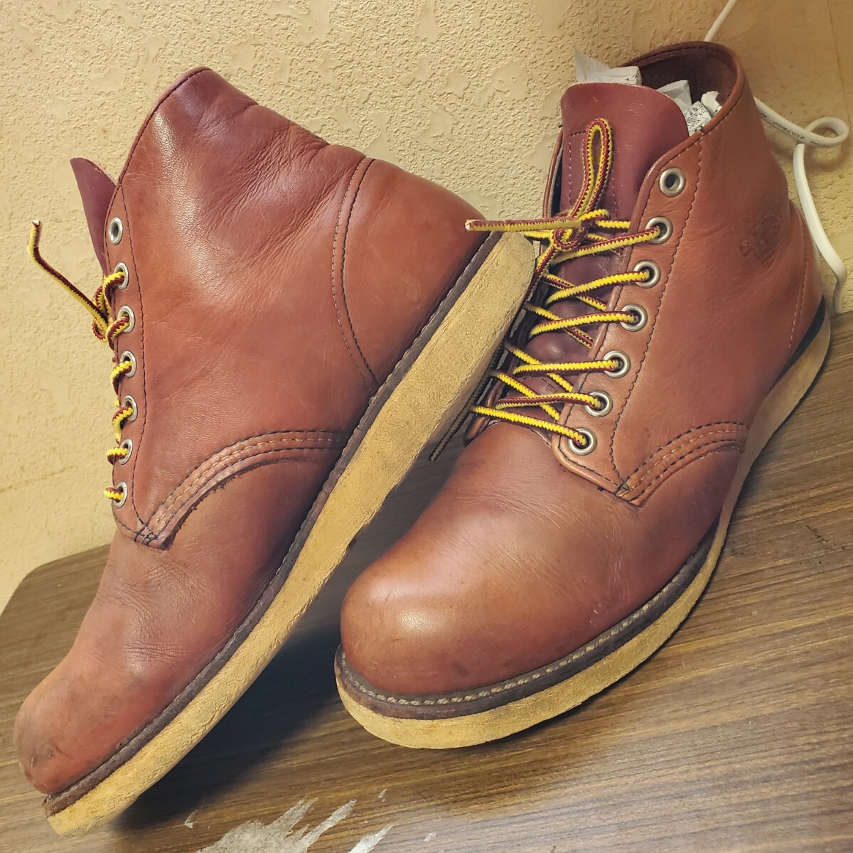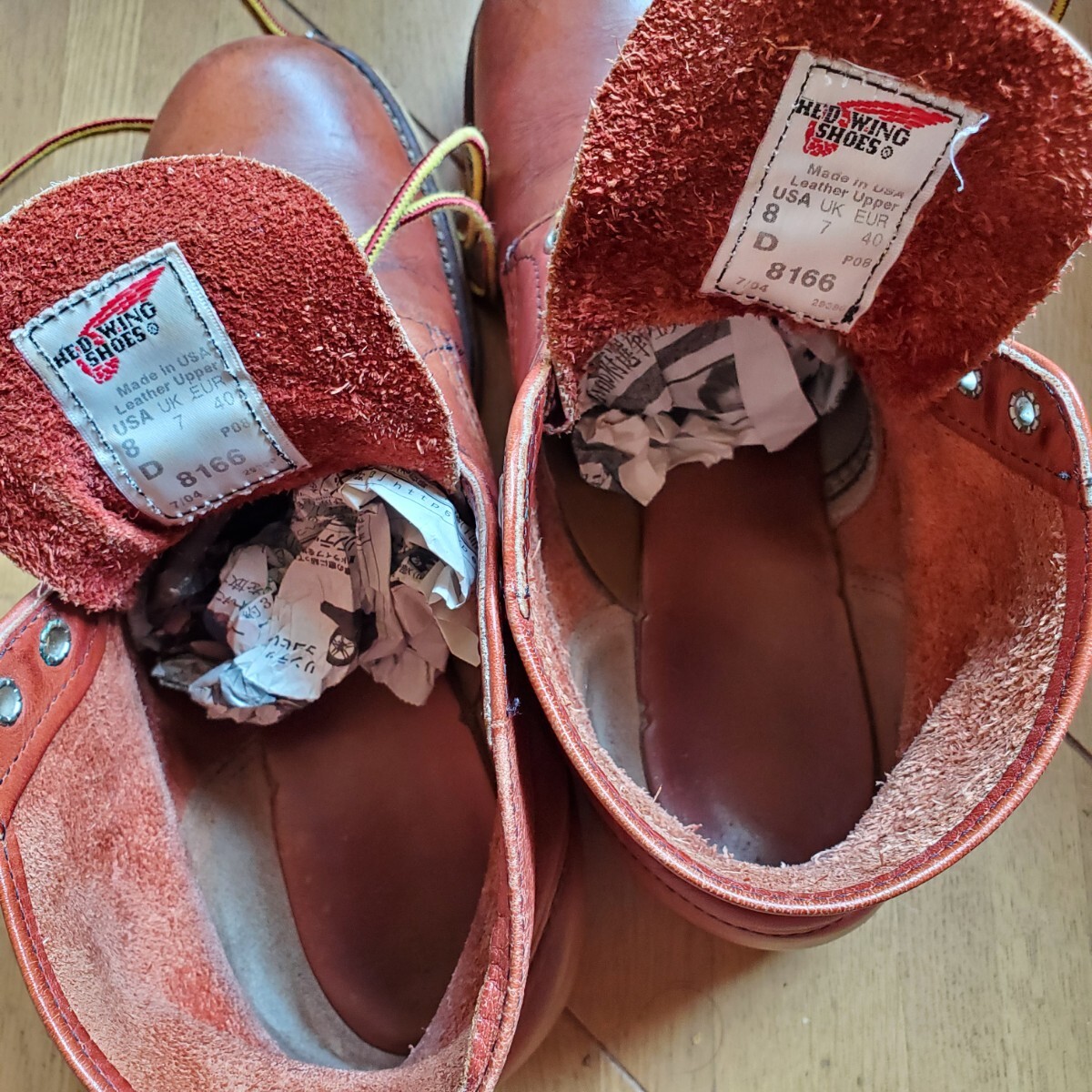 レッド・ウィングが平らな底のクッション性に富む白いソールをハンティング・ブーツに組み合わせたのは1952年、今日も現役のブーツ#877の発売と共に当時このようなソールを男性用の靴に用いるのは例がなく、革新的な試みで、このブーツは高い評価を得てワークブーツとしても履かれるようになり2年後には6インチ丈(#875)チャッカ、オックスフォードというバリエーションも生まれ、このソールは既にあったラウンド・トゥーのワークブーツにも組み合わされ以来トラクションドレッドソールはレッド・ウィングのトレードマークにもなりアメリカを代表する靴となり1960~70年代アメリカ西海岸に端を発するドレスダウン・カルチャーの浸透と共にジーンズやワークブーツが若者達の日常スタイルに取り入れられレッド・ウィングのトラクションドレッドソールのワークブーツはカジュアルウエアとしての発展を始めレッドウイング社を代表するデザインの一つで歩きやすさを追求したシンプルなデザインは歩行性に優れ男女問わず高い人気を誇り赤みがかったブラウンカラーが人気の8166はワークブーツのタフさも残しつつカジュアルでワークブーツ初心者でも気軽に履け履きこんだ際の深みのある色味の変化も魅力。