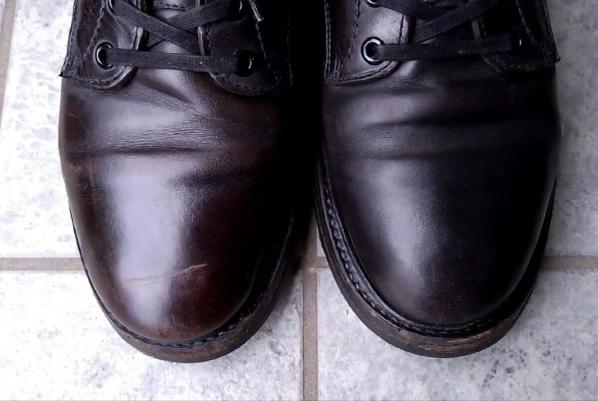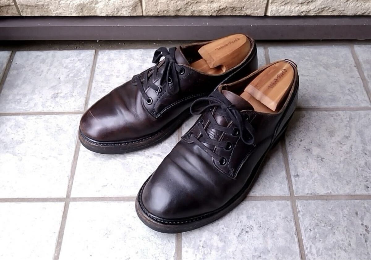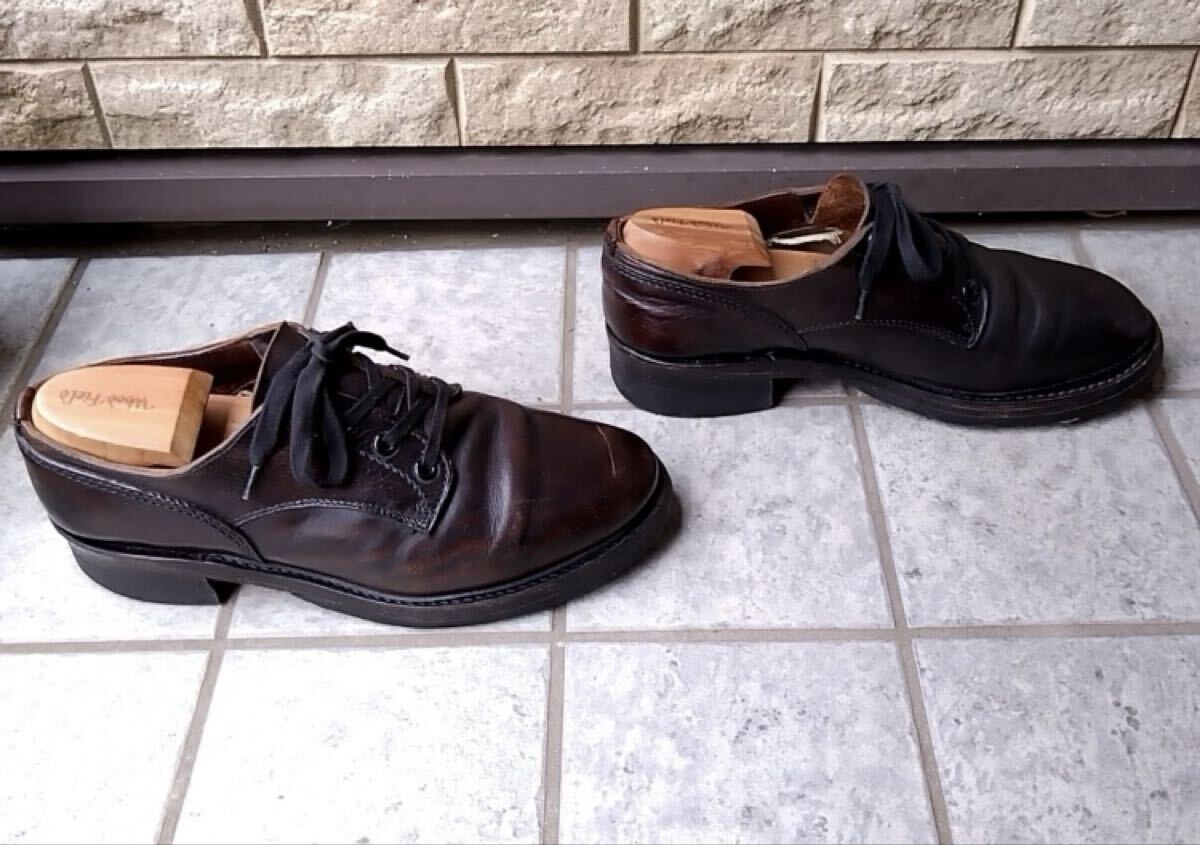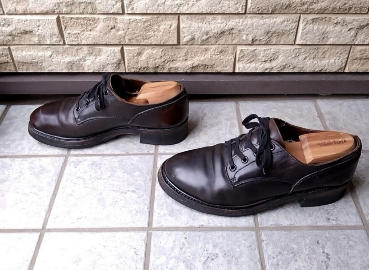 それなりの使用感があり、かかとまわりと右足は全体的に茶芯が出て来ています。まだまだエイジングを味わって頂けます。
