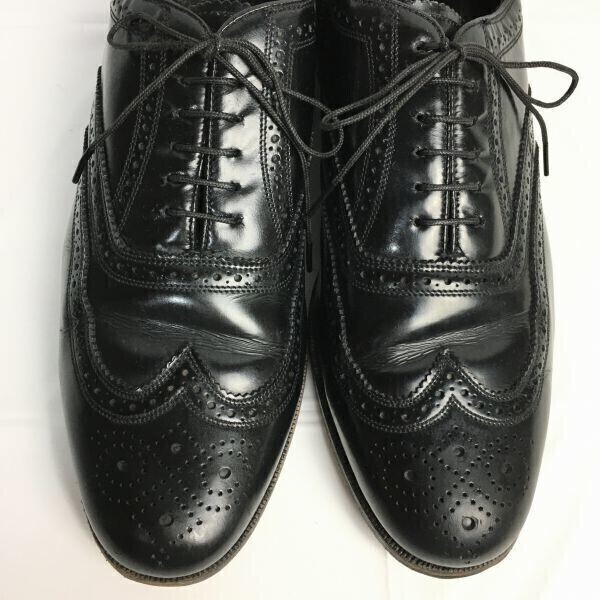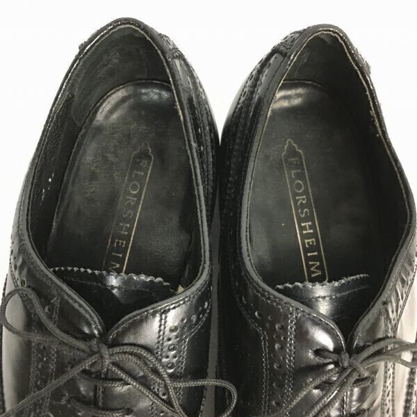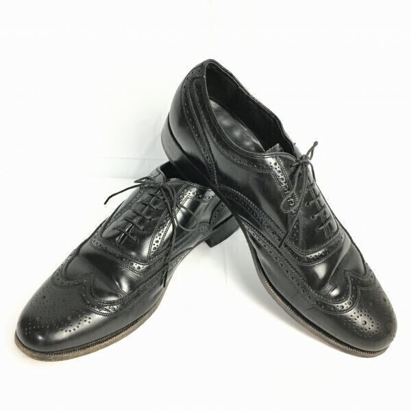 フローシャイム/FRORSHEIM 85年製?ビンテージ フルブローグ ウイングチップ 黒 サイズ8.5D 26.0-26.5 管NO.WZD-121
