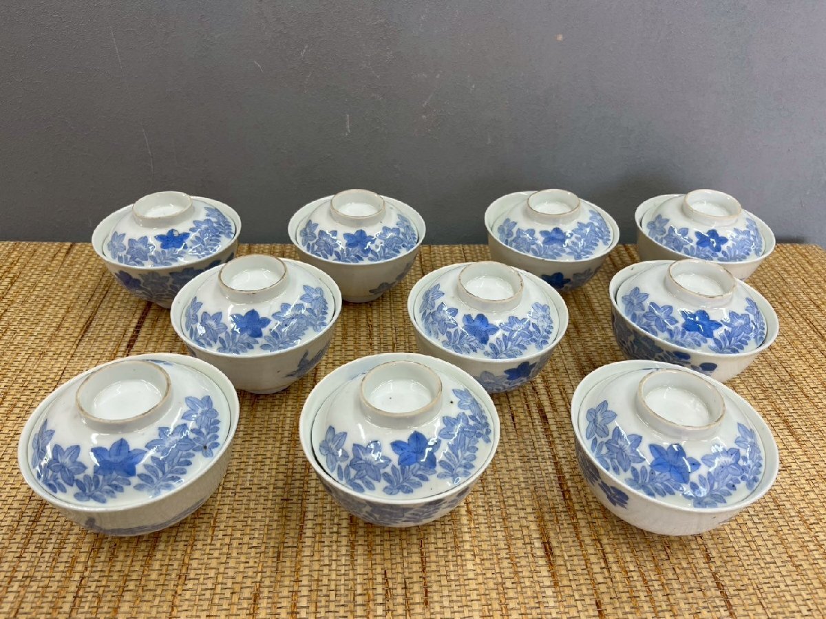 蔵出し 時代物 食器 ミニ丼 丼 陶器 青花 古い食器 染付 飯椀★茶碗10客
