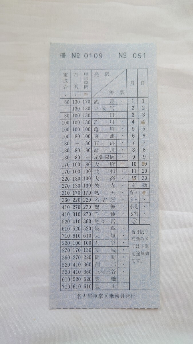 ☆国鉄名古屋車掌区発行☆車内補充券☆軟券