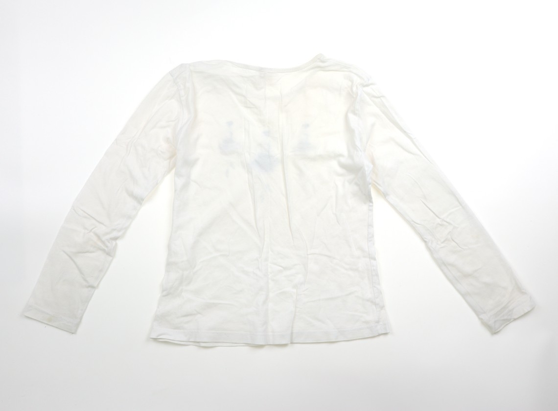 首周りにヨレと袖にやや薄汚れが見受けられます。実際のサイズ表記は152cm。