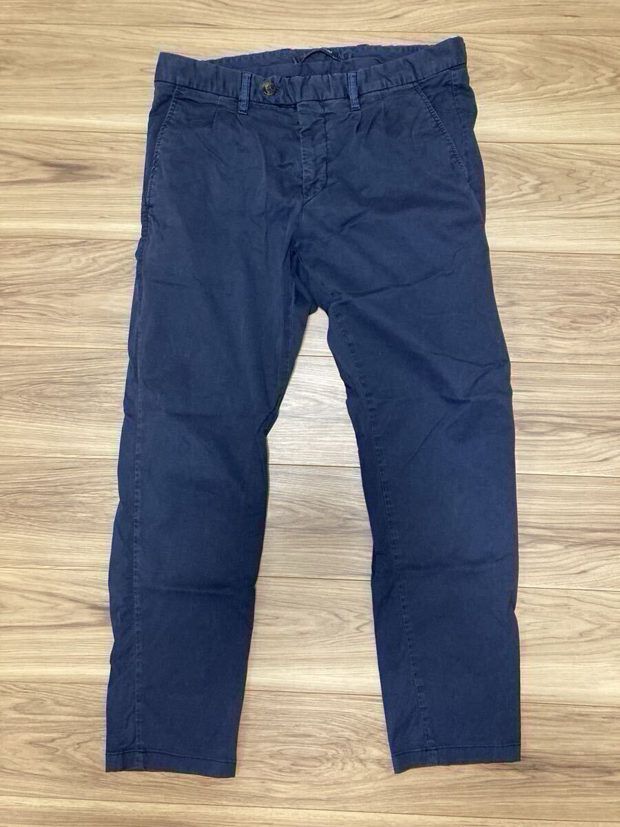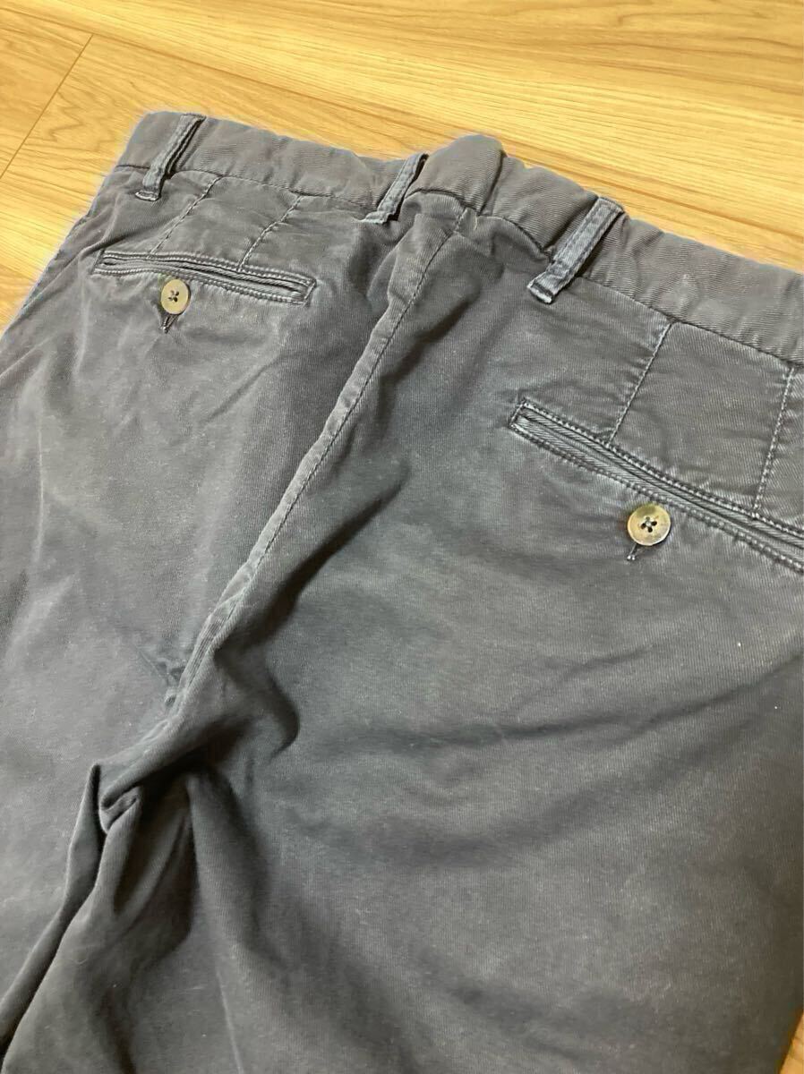 使用状況 :2年くらい前、ヤフオクで落札しましたが、ほとんど履かず自宅保管していました。パンツインしてシャツを着ると、良い感じだと思うサイズ感です。目立つ汚れや傷はなく、コンディションは良い方だと思います。裏側にボタンがあるなどこだわりがあり、ネイビーパンツを探している方はご検討ください。