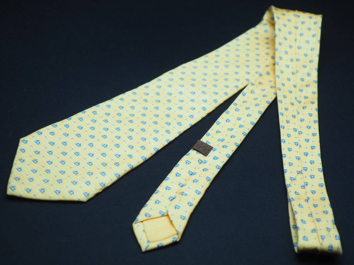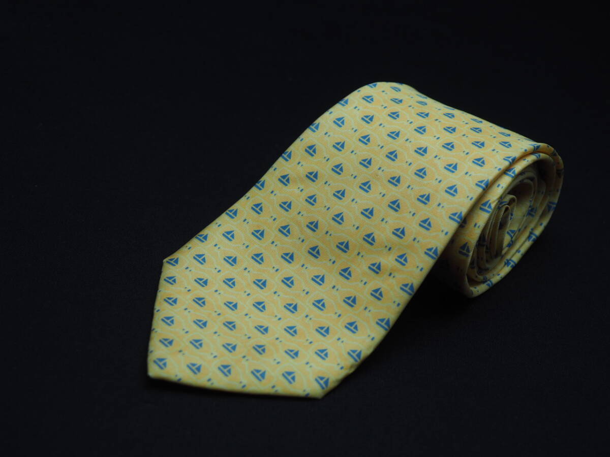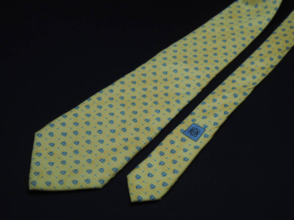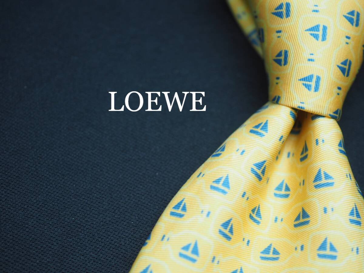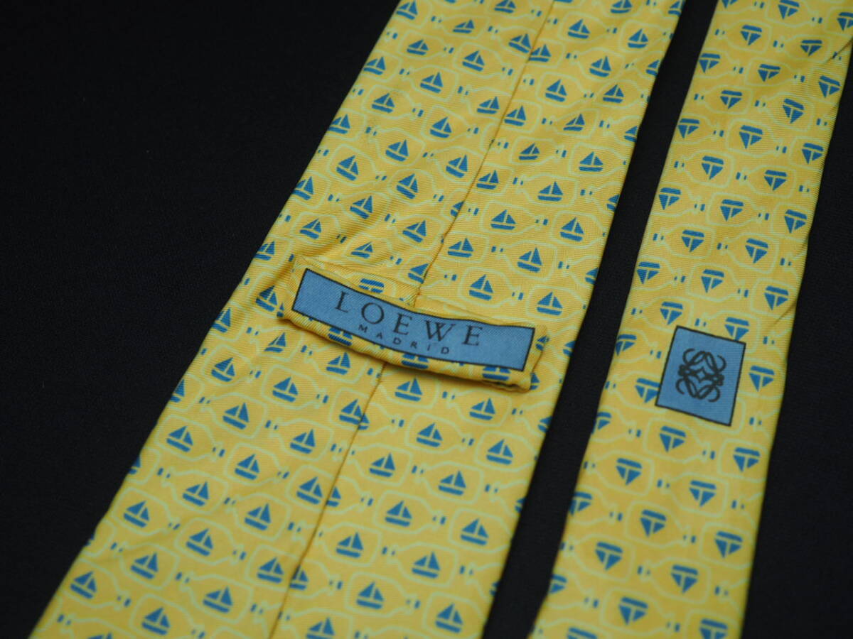 美品【LOEWE ロエベ】 F1929 黄系 SILK ブランド ネクタイ 古着 良品