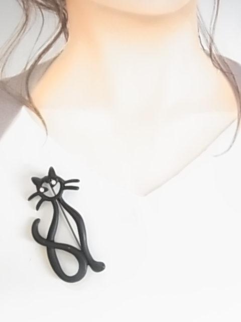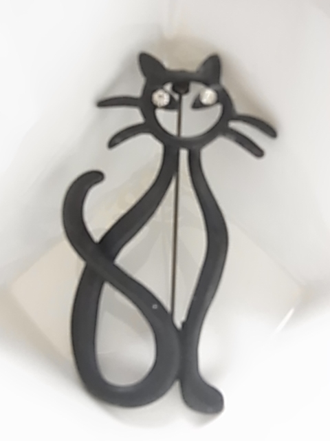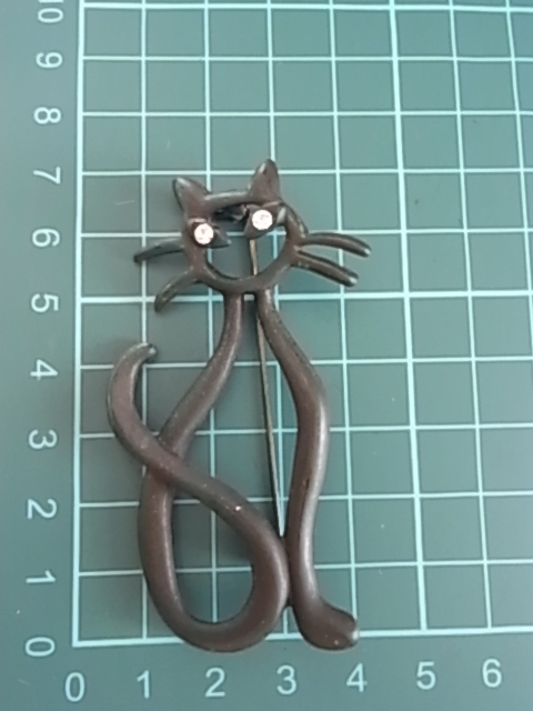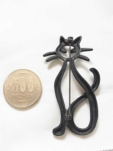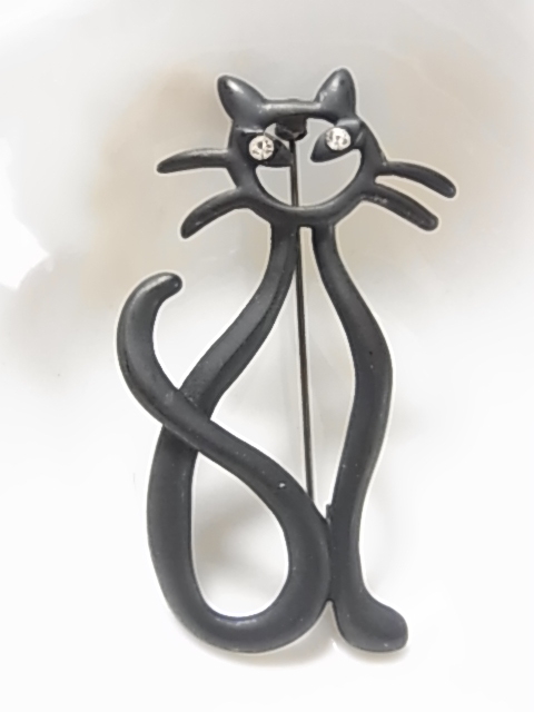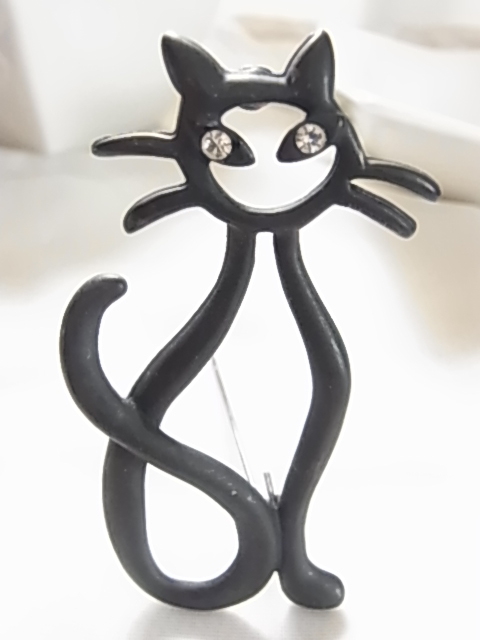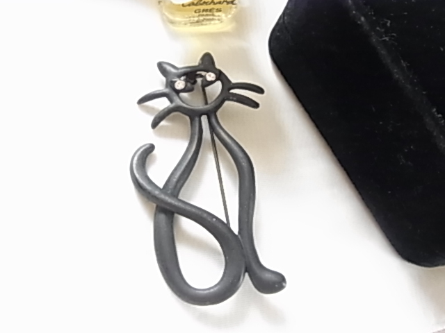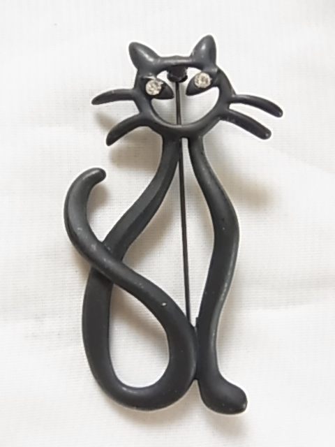 ビンテージ/ヴィンテージ 可愛い黒猫ちゃん ネコ ねこ キャットモチーフ 瞳はクリアラインストーンが輝く 大き目 ブローチ♪♪