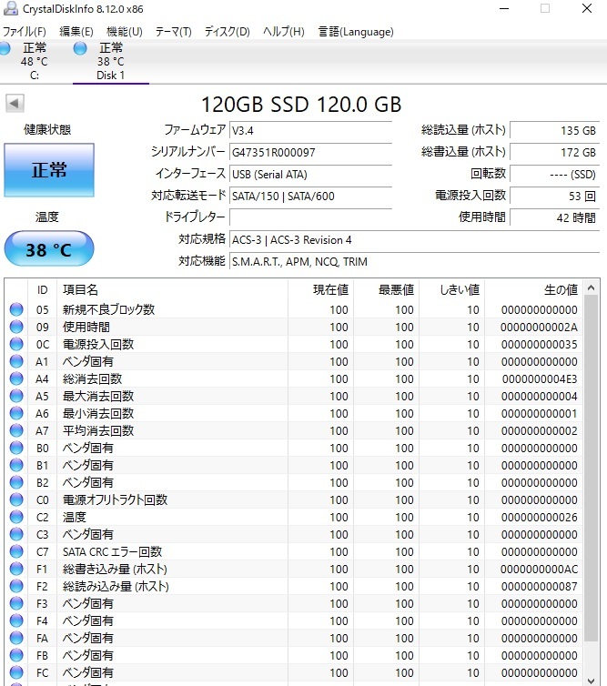 | 無水エタノールにて清掃消毒済み ●お送りするお品物 動作時間 42時間 53回起動 ほぼ未使用の良い品物です。 プレステ3で使用でき、長い時間かかるインストールやゲームの起動など爆速になりストレス軽減です! SSD 1台 ソリッドステートドライブ Solid State Drive メーカー ipt International Power Technology インターナショナル パワー テクノロジー S400S120G 容量 120GB SATA 2.5インチ ●動作確認など プレイステーション3で検品使用していました。美品です。 PCの外付けでの確認もしており、正常な動作品です。 PCソフトのCrystalDiskInfoでも正常判定になりますので安心です。 ご要望があれば、PCにてフォーマットいたしますので、落札後にナビにご連絡ください。 なにもなければそのままでの発送になります。 ノートパソコンやデスクトップパソコン、プレイステーション3などのSSDとしても使用できます。 (規格が合うか確認してください) ●注意事項 動作確認をしているお品物になりますが、万が一、動作不良などありましたら交換ないし返金いたしますので到着後3日以内にご連絡ください。 (全送料はご負担ください。) |