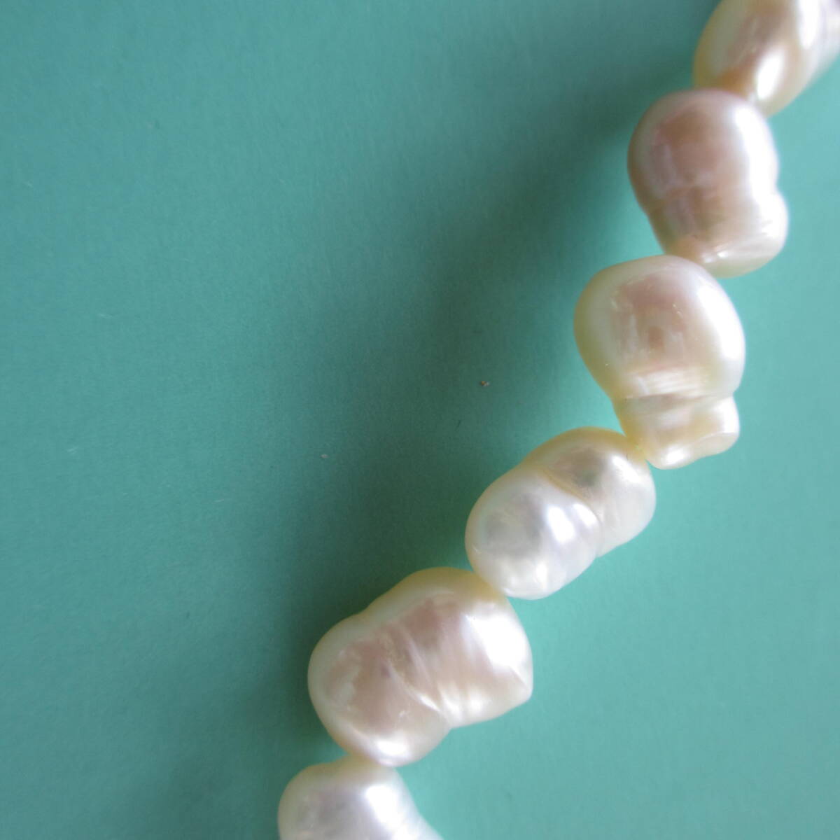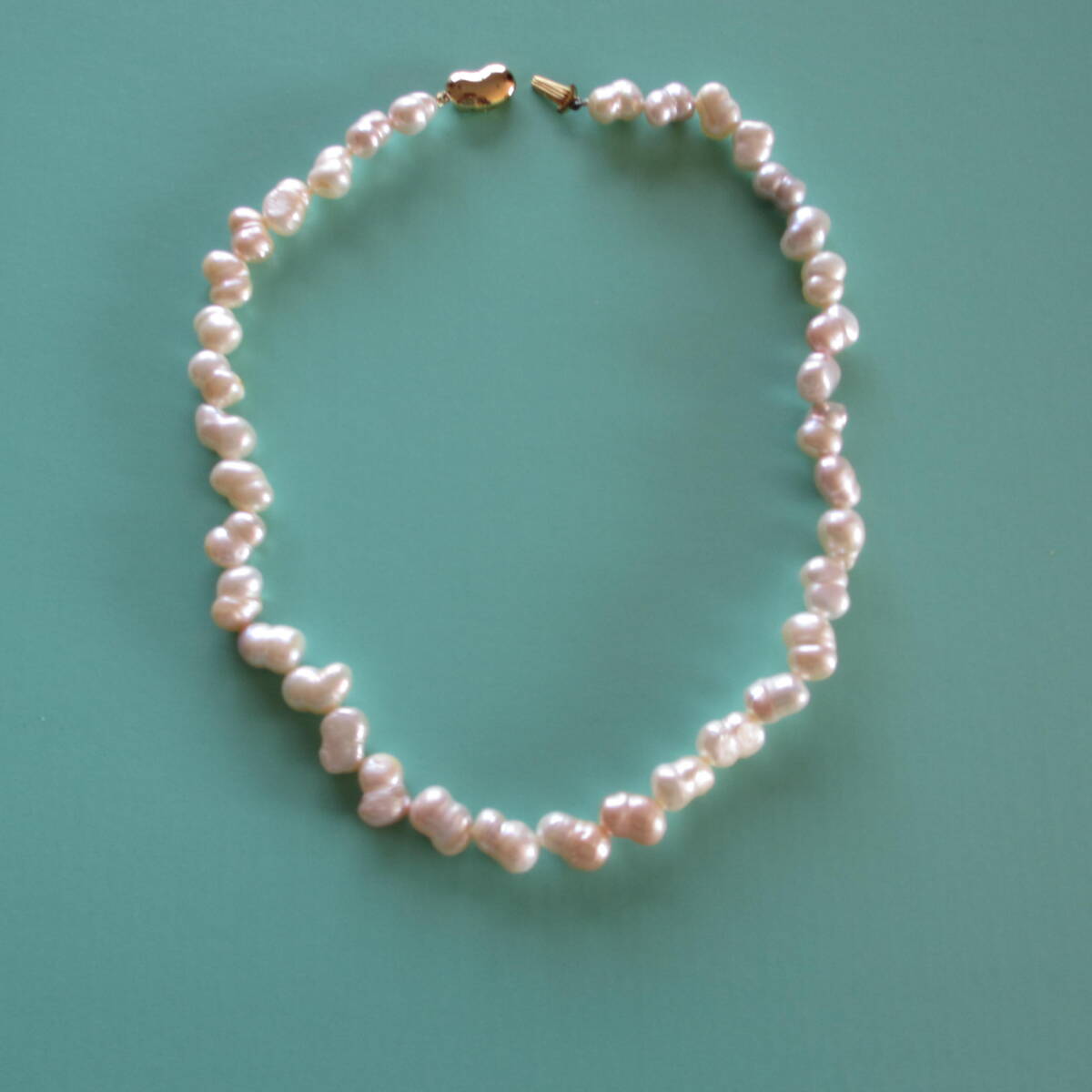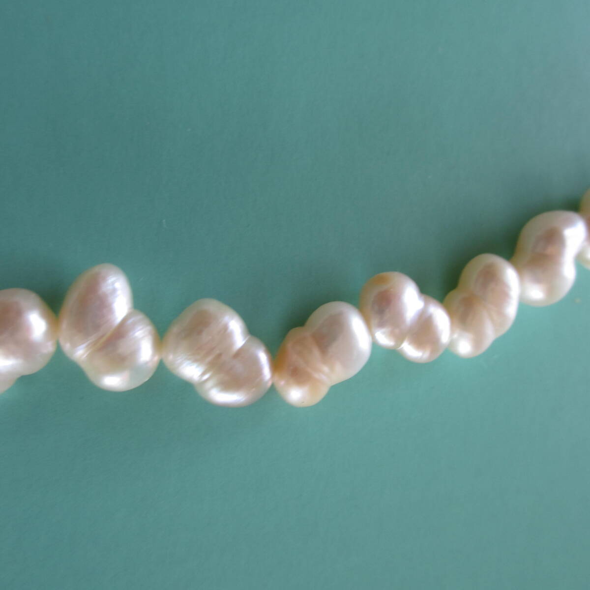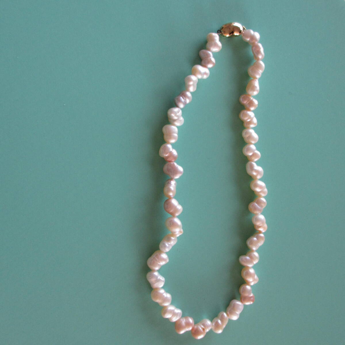 お色目はホワイトカラーと淡いピンクのコラボレーションのバロックネックレスです。(自宅保管)