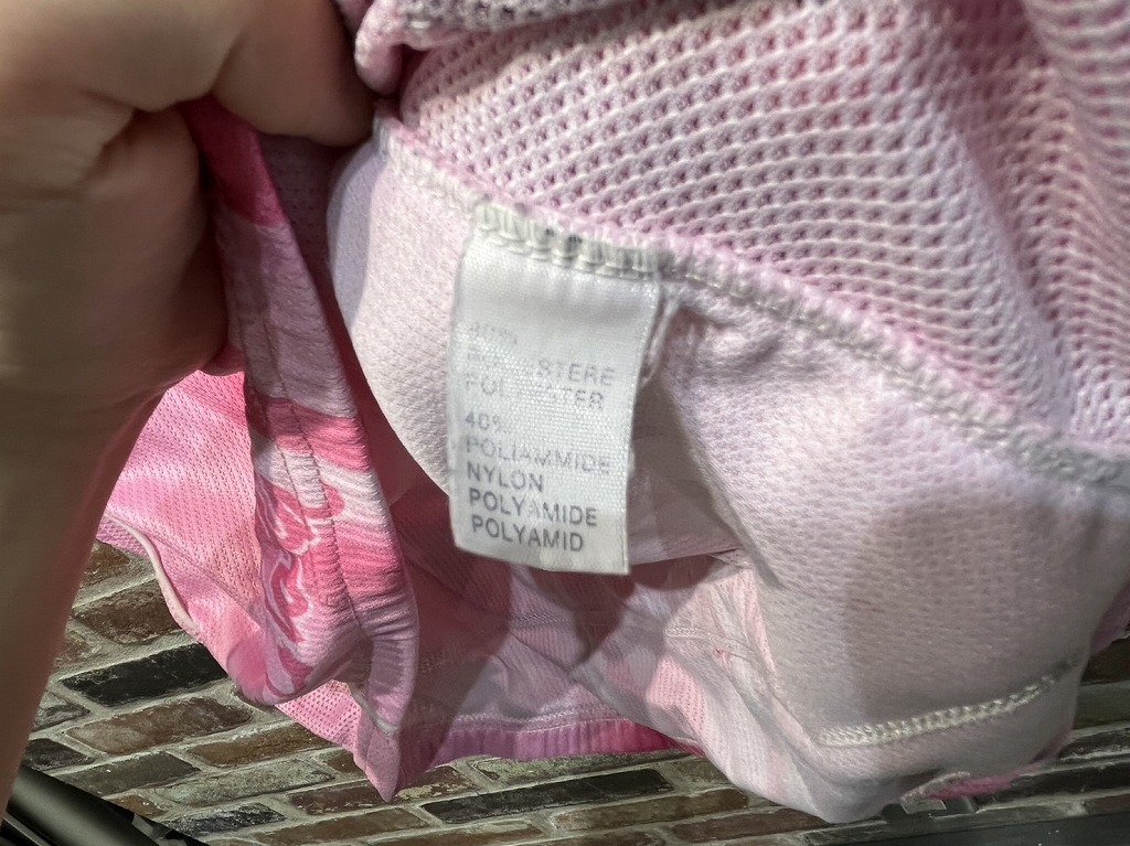 また、背面下部にほつれがあり、糸が飛び出しております。