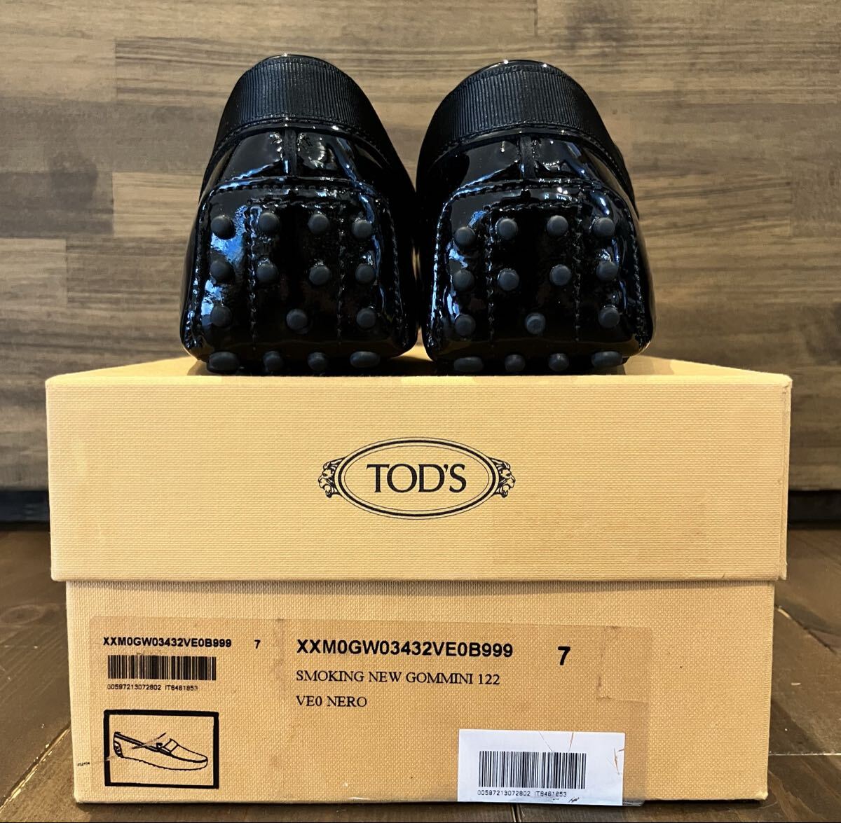 新品 トッズ ニュー ゴンミーニ Tod's NEW GOMMINI ドライビングシューズ メンズ 7(26cm) 黒エナメル SMOKING イタリア製 アニエッリ愛用