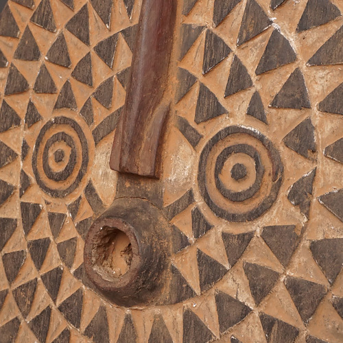 このマスクは主に農耕儀礼や自然への祈りの儀式で用いられ、収穫や大地の豊穣を祈願するために踊りとともに登場します。