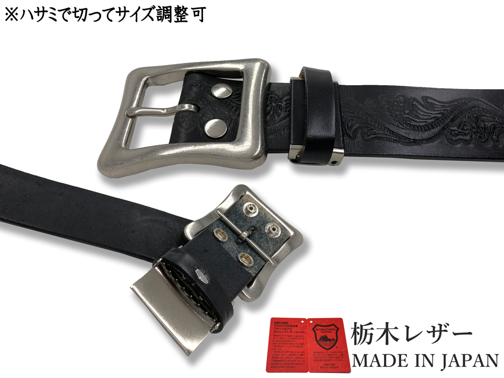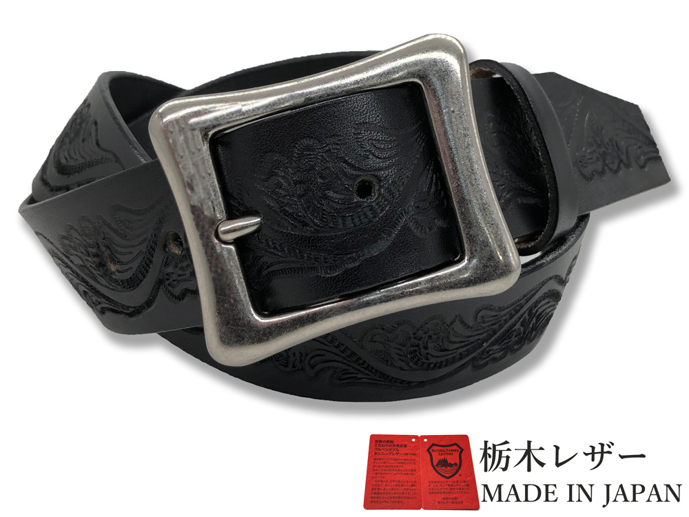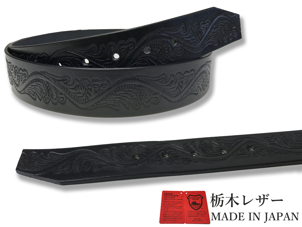 新品 栃木レザーベルト 本革 牛革 Mサイズ メンズ レディース 国産 レザー クラフト 型押し 40mm カジュアル ベルト 黒 ブラック W054-M-BK