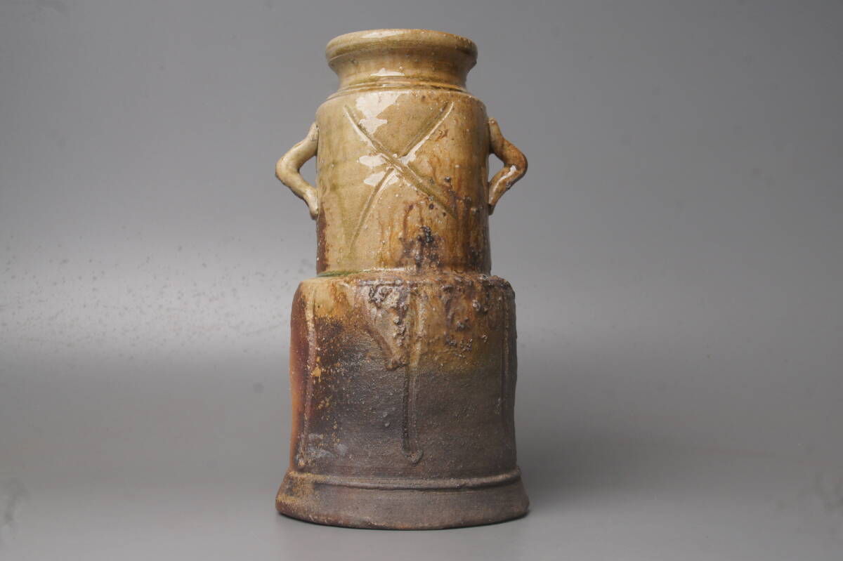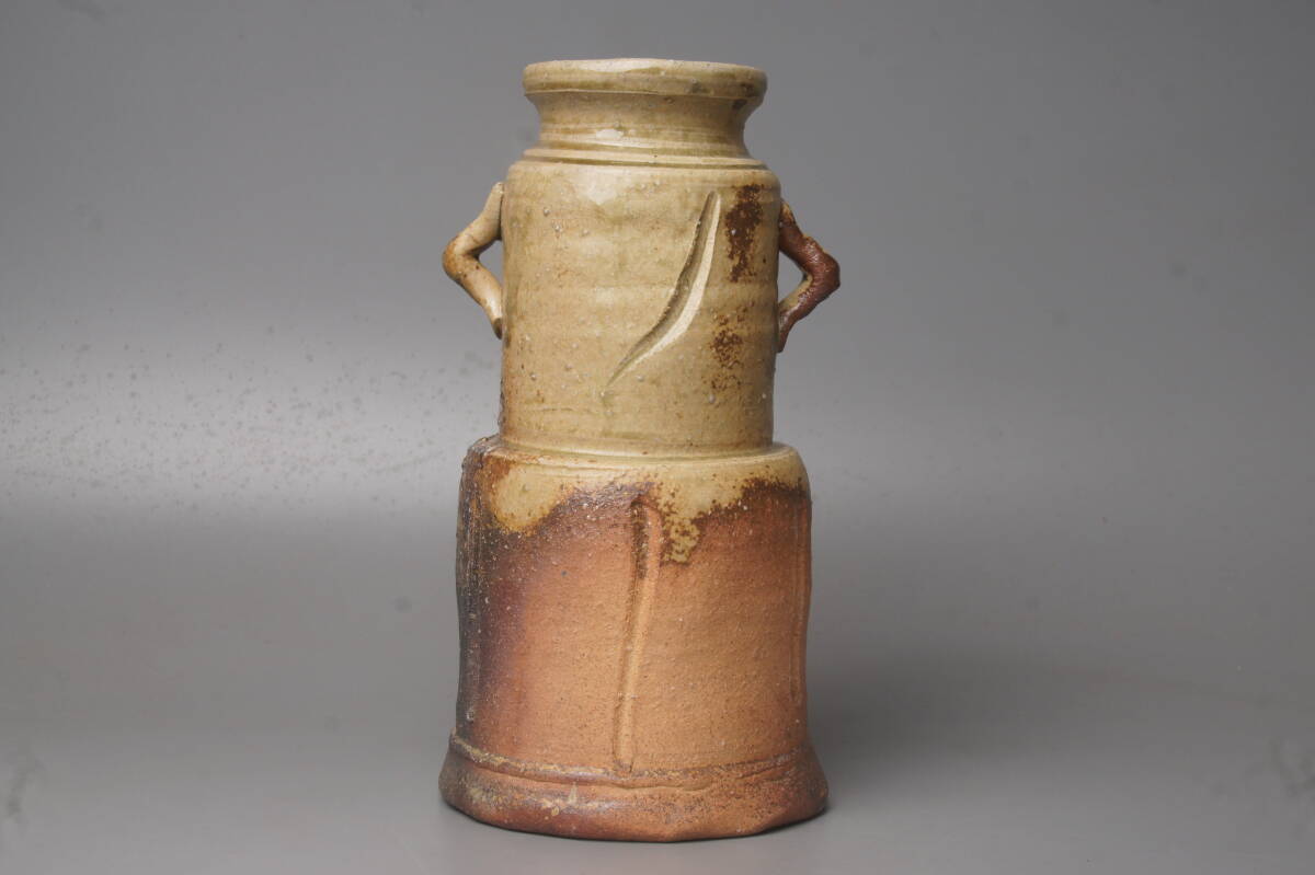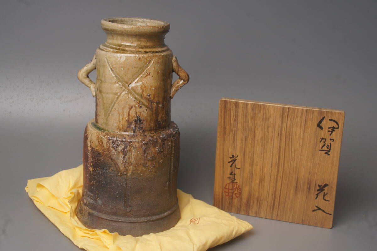 伊賀焼 谷本光生 耳付花入 高さ25.5㎝ 共箱 花瓶