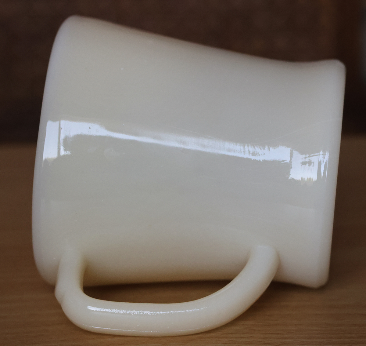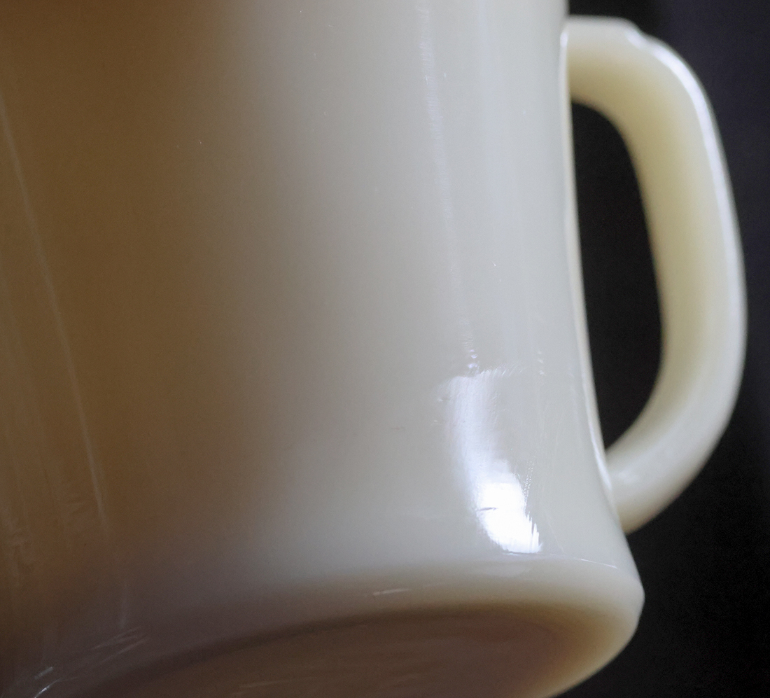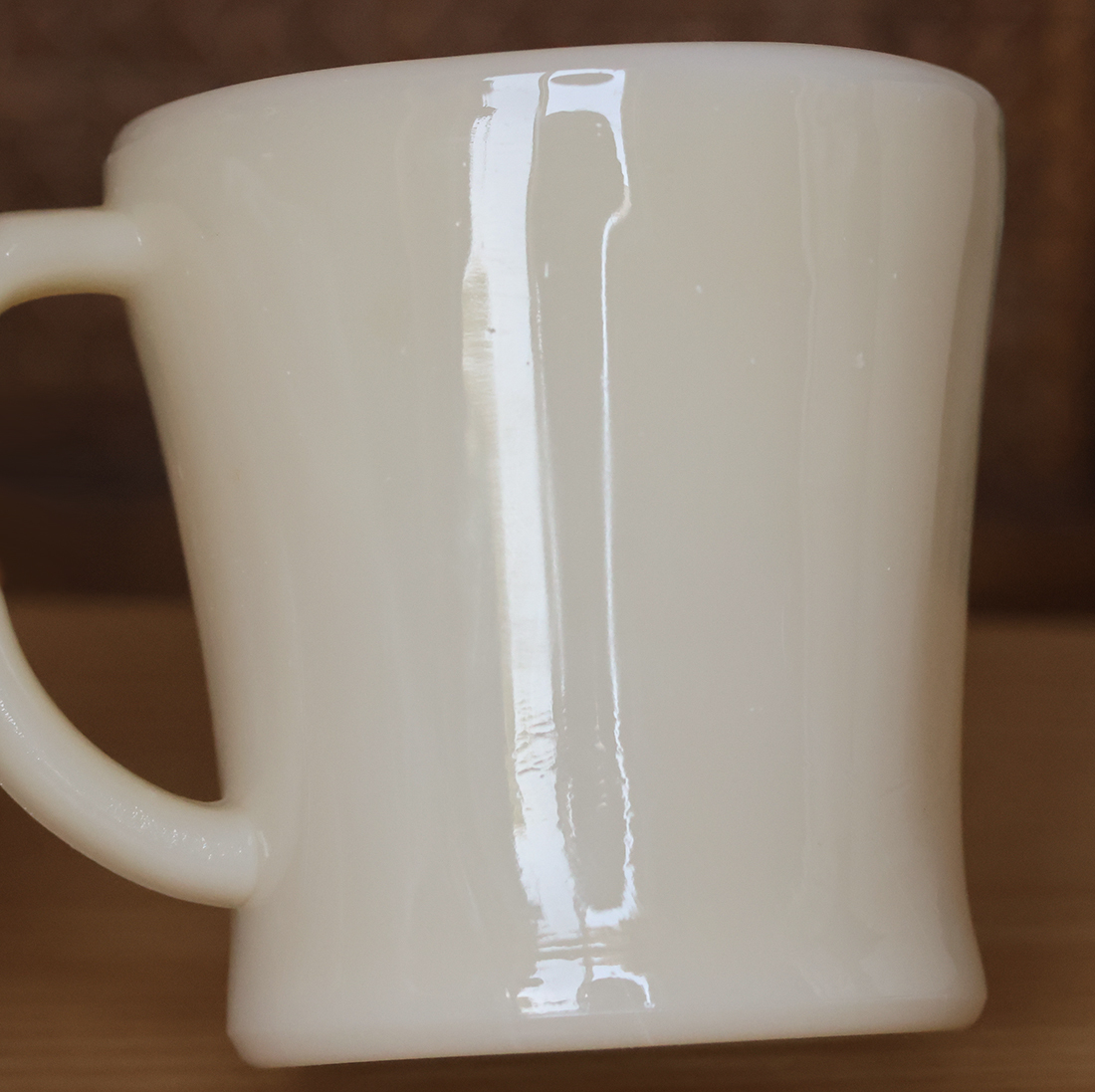 【商品の状態】 ★★★★★★ 口径7.3cm 高さ8.8cm 重さ300g 未使用ピカピカで重みのあるオリジナルファイヤーキングアイボリーフラットボトムマグです。 ヒビ、カケなく、ツヤがあり、使用感もなくミントコンディションです。リムのざらつきや、キズ、擦れも見られずとても艶やかで綺麗な状態です。外側ボディー下部に製造時にできるマットな部分が一部あります(画像参照)。 底にはファイヤーキングの刻印があります。 80サイズでの発送となります。送料は料金表をご確認くださいませ。K904-3 |