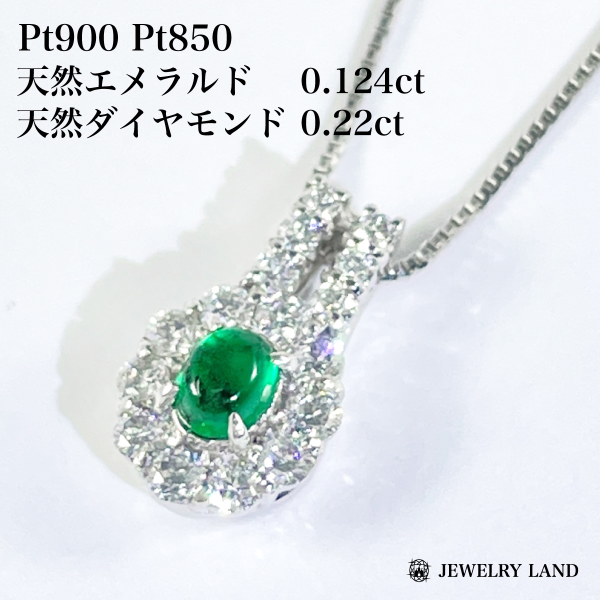 Pt900 Pt850 天然エメラルド 0.124ct ダイヤ 0.22ct