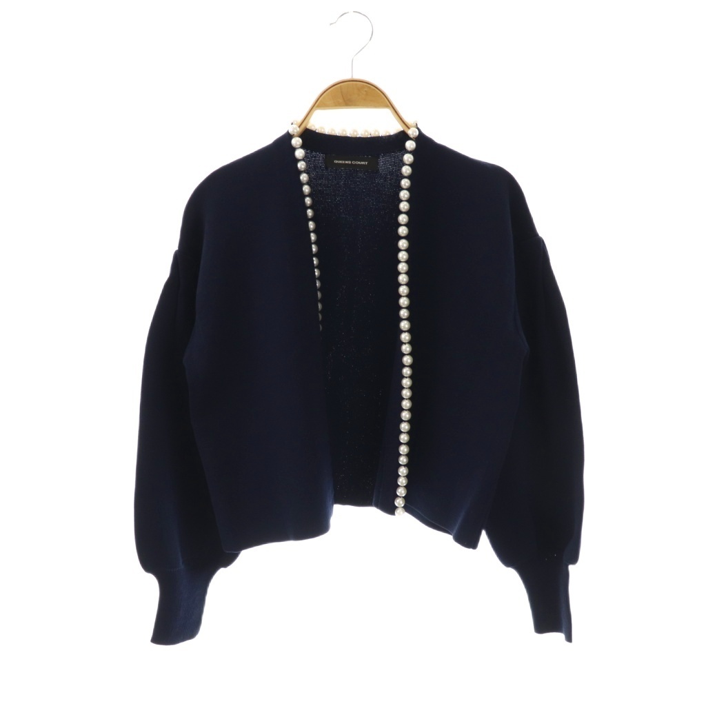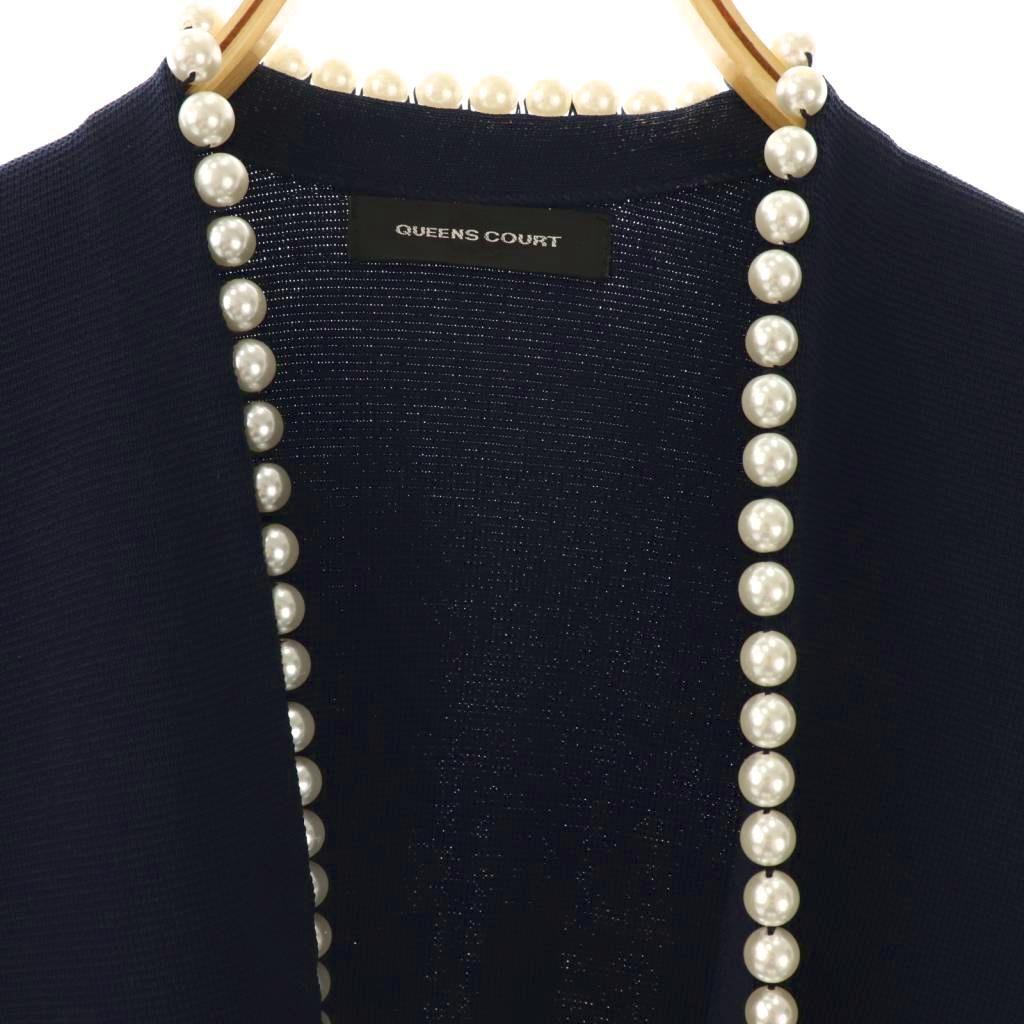 クイーンズコート QUEENS COURT パール付きボレロ カーディガン 前開きトッパー 2 紺 ネイビー /AT ■OS レディース