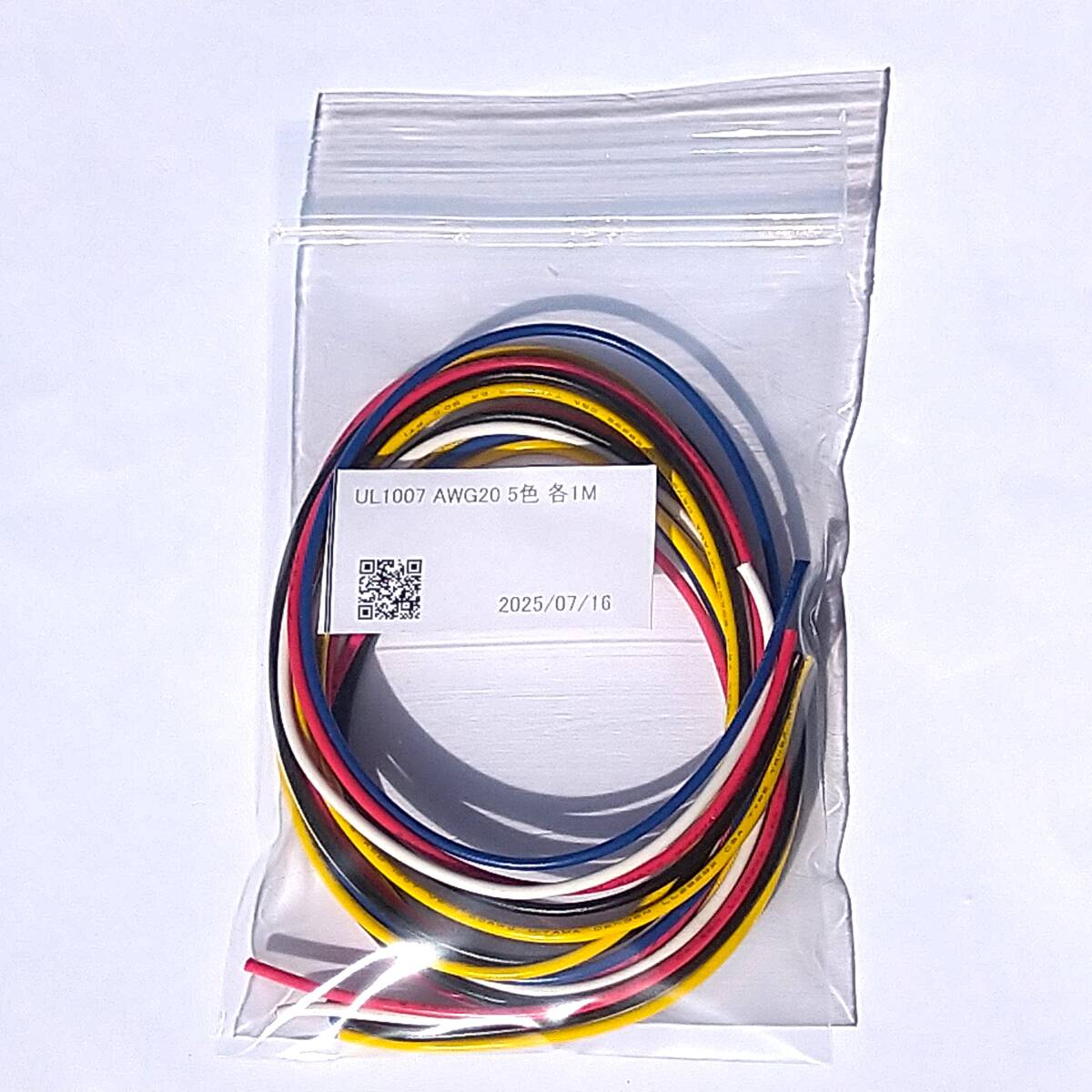 【匿名配送可】 UL1007 AWG20(0.5sq相当) 5色 各1M 合計5M カラー:赤黒白青黄 300V 80℃ スズメッキ 耐熱ビニル撚り線 より線 #07IW