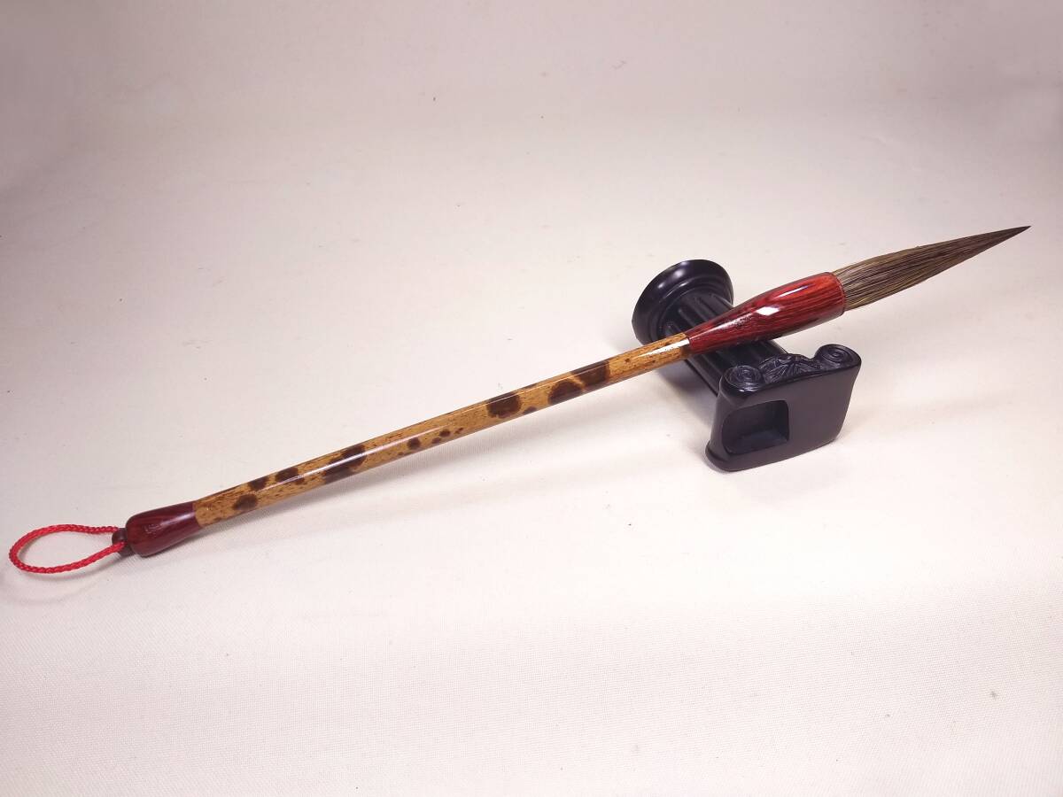 この品の筆軸に使用されている材料は、39数年前、産地にて直接購入した品です。35年以上に渡り乾燥された無垢材です。 本品に使用されている竹材の模様は、非常に綺麗です!これらの材料は、大変手に入り難くなっています。中国で現在、高級な毛筆、楽器製作のみに使用されています。中国毛筆制作の象牙、翡翠、玉石、唐木、骨類、竹類の六大類中、竹類の最高級の品種です!