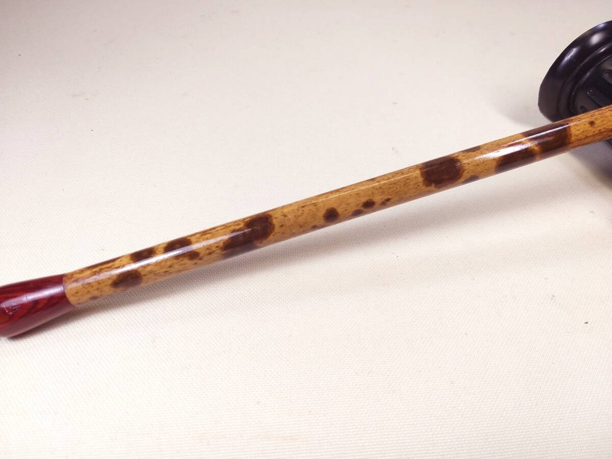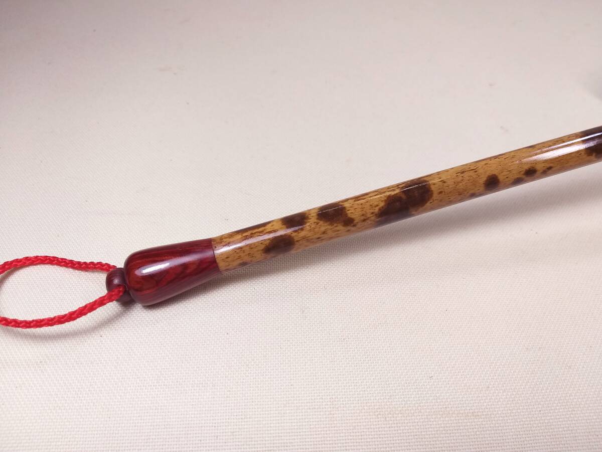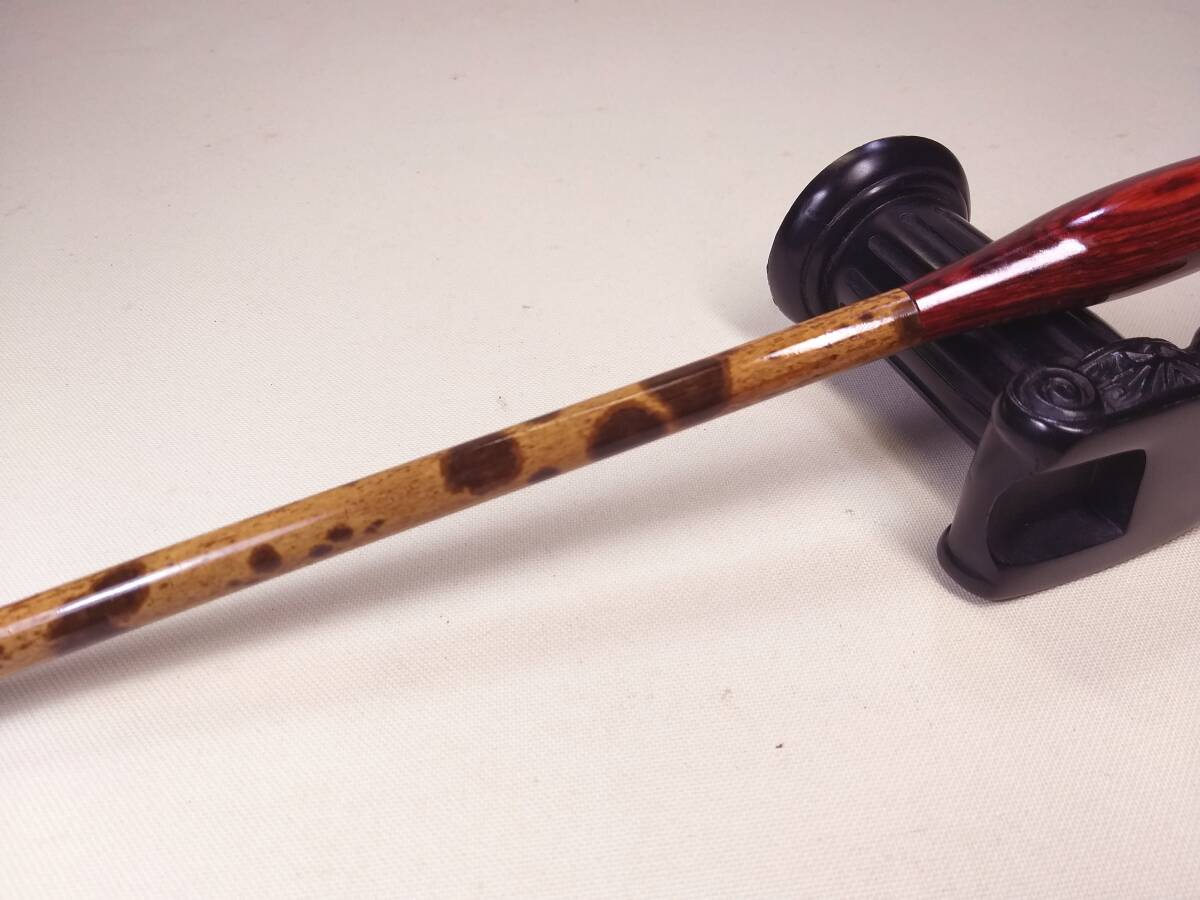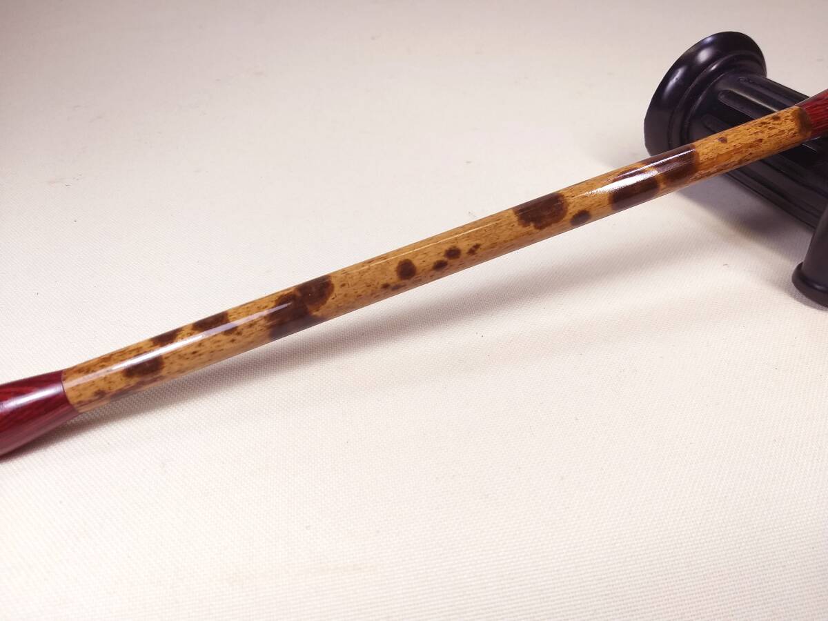 写真をご覧下さい。使用の竹の素材の模様は、安価な人工印染の模様とは異なります。素敵な天然野生老竹の模様です。50年以前には、中国の湖南省、湖北省、雲南省の沢山の県で、珍貴、稀少な名竹が生息しておりましたが、天候の温暖化による大面積による竹の開花、枯死により、また、欧米市場に出荷のため大量の伐採により、現在では、この種の野生湘妃竹は雲南省平南県の1つの県の山区にのみ少量見られるだけとなりました。ほとんどが人工植樹の幼竹ですが、相場価格は、非常に高額です。野生竹は、ほとんど見られません。