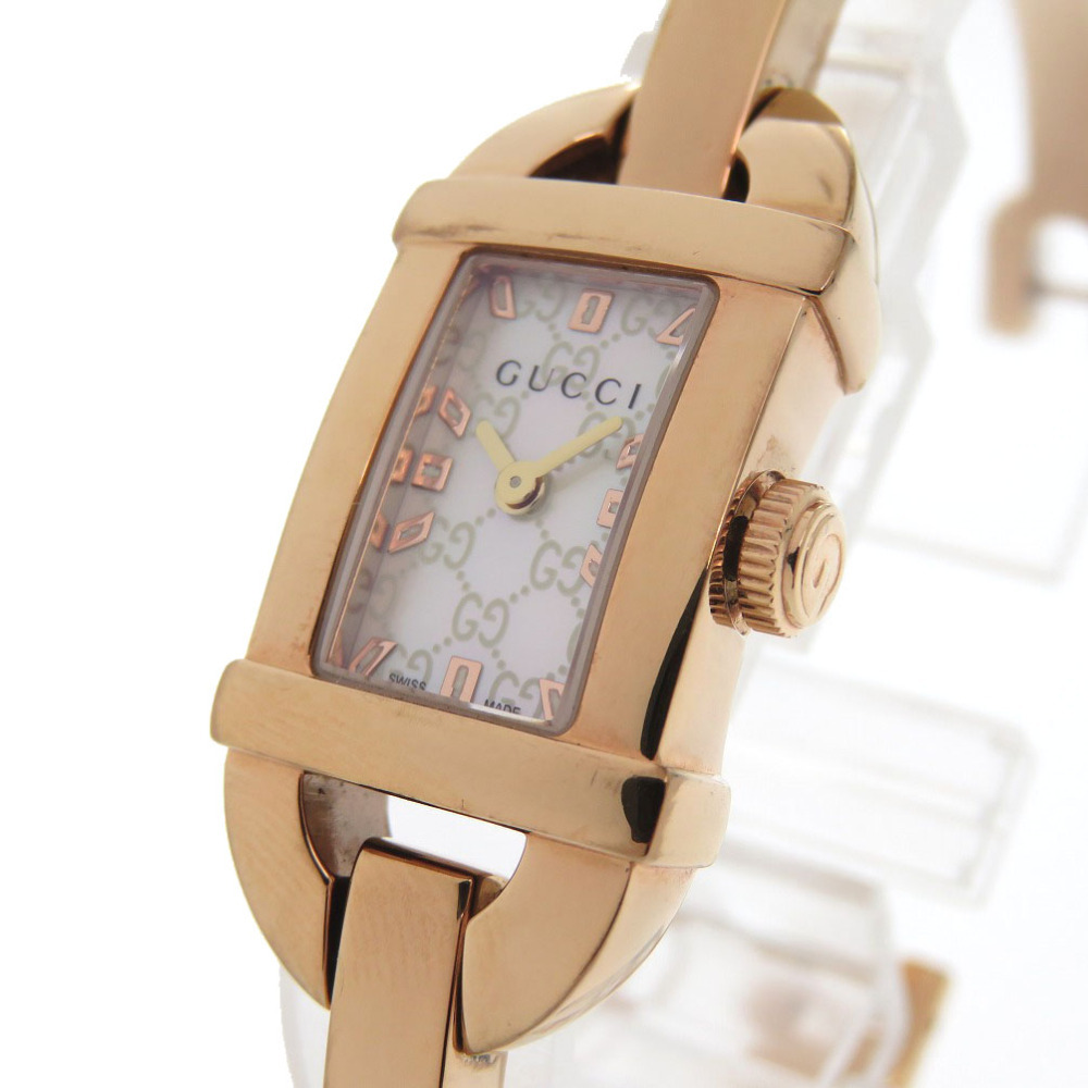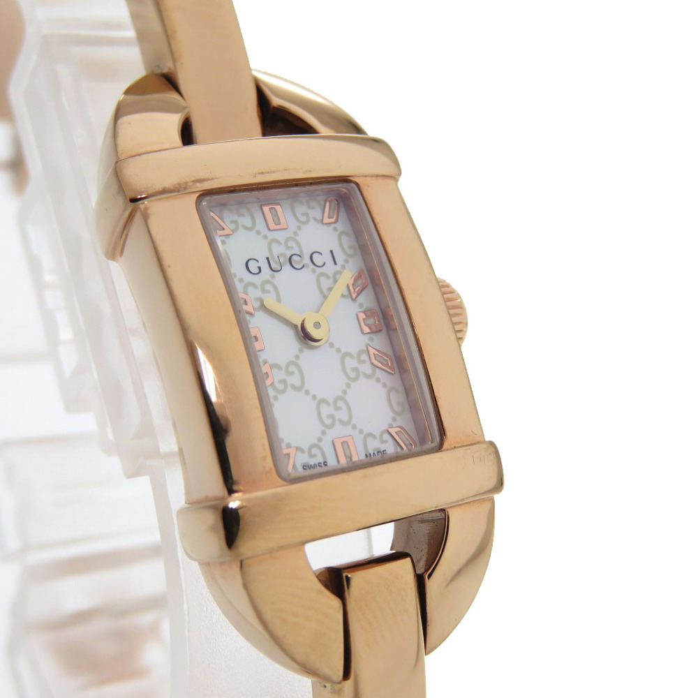 美品 グッチ 6800L ピンクゴールド シェル文字盤 SS ホワイト クオーツ 腕時計 1683 GUCCI