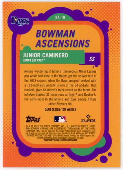 RAYS三塁▲JUNIOR CAMINERO/2024 BOWMAN CHROME MEGA BOX BOWMAN ASCENTIONS MOJOリフRC!