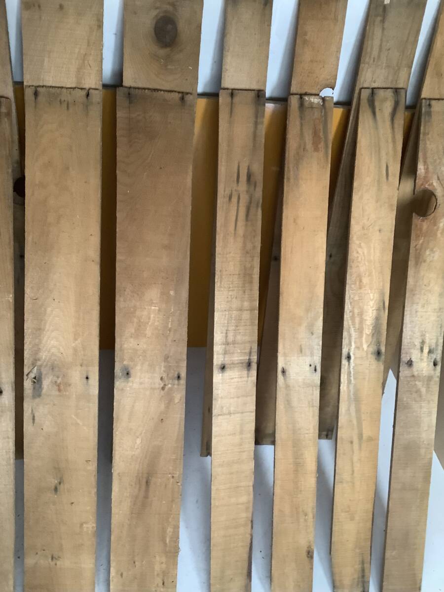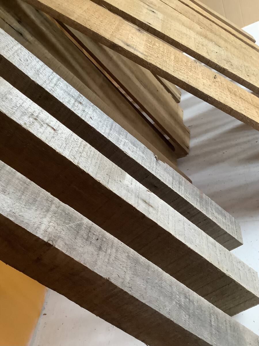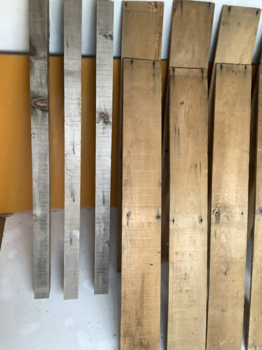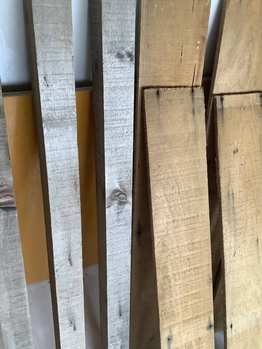 ご覧いただいてありがとうございます。画像は使い回ししております。基本セットとして松板16枚、松垂木3本、合計重さ9キロ以上の古材になります。板材寸法93.5センチ× 12センチ弱× 1センチが15枚から16枚、93.5センチ× 7.5から9.0センチ× 1センチが混ざる場合もあります。垂木93.5センチ× 5.8センチ× 4.8センチの3本全部で基本的には19点になります。重さ調整のため枚数が増減する可能性があります。画像は混ざった状態となっております。お荷物到着後は枚数と9キロ以上の確認をお願いしたいと思います。寸法については若干の誤差はあると思いますが、お得なセットと考えております。