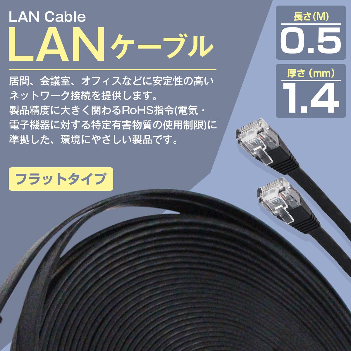 【送料無料】CAT6 カテゴリ6 薄型 フラット LAN ケーブル 0.5m 50cm 黒 ブラック パソコン インターネット PC WiFi ルーター 無線 有線